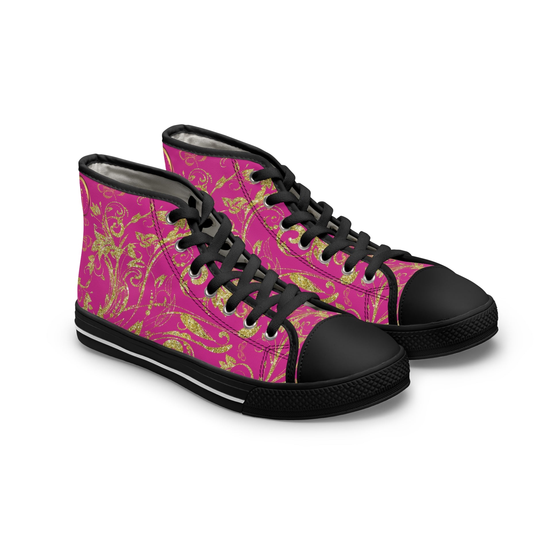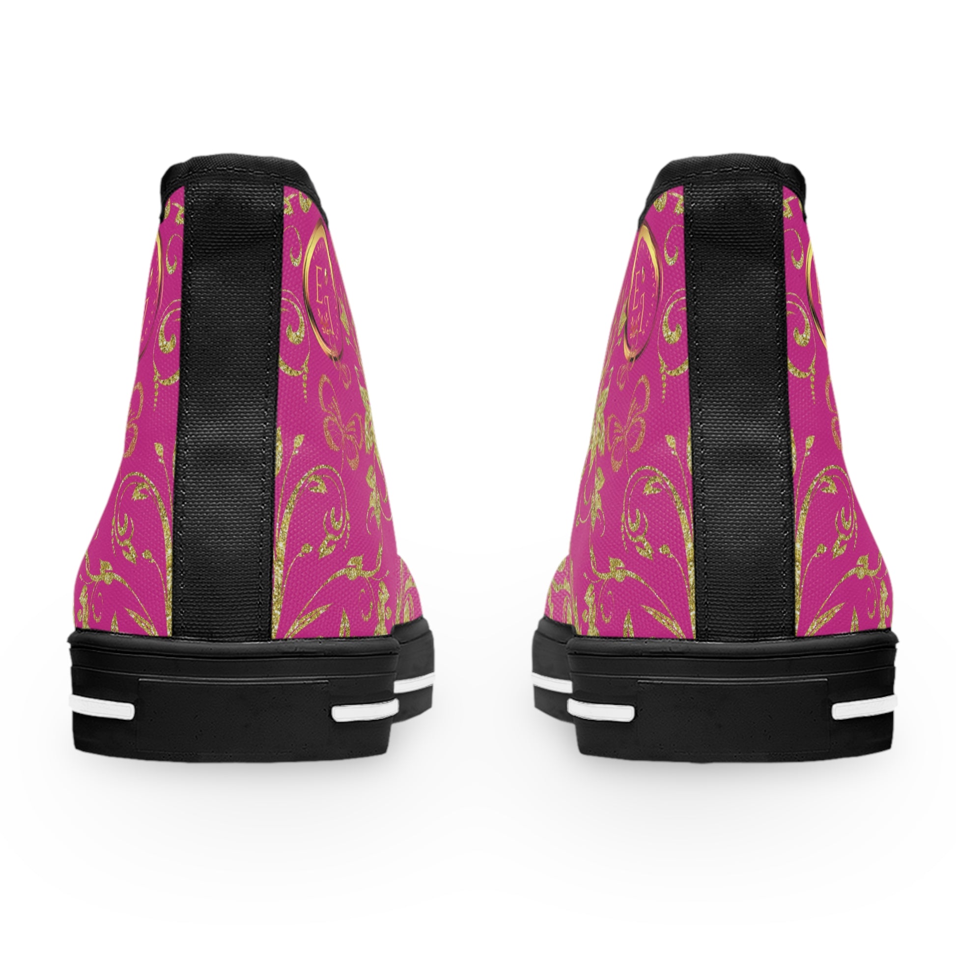 Bohemian Butterfly Heart | Pink | Black Sole HighTop Sneakers