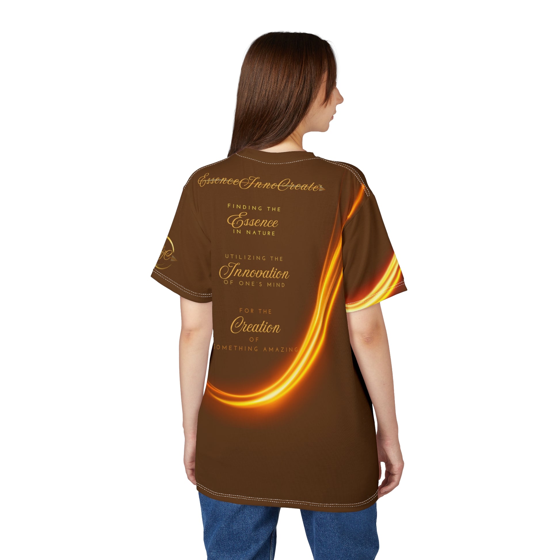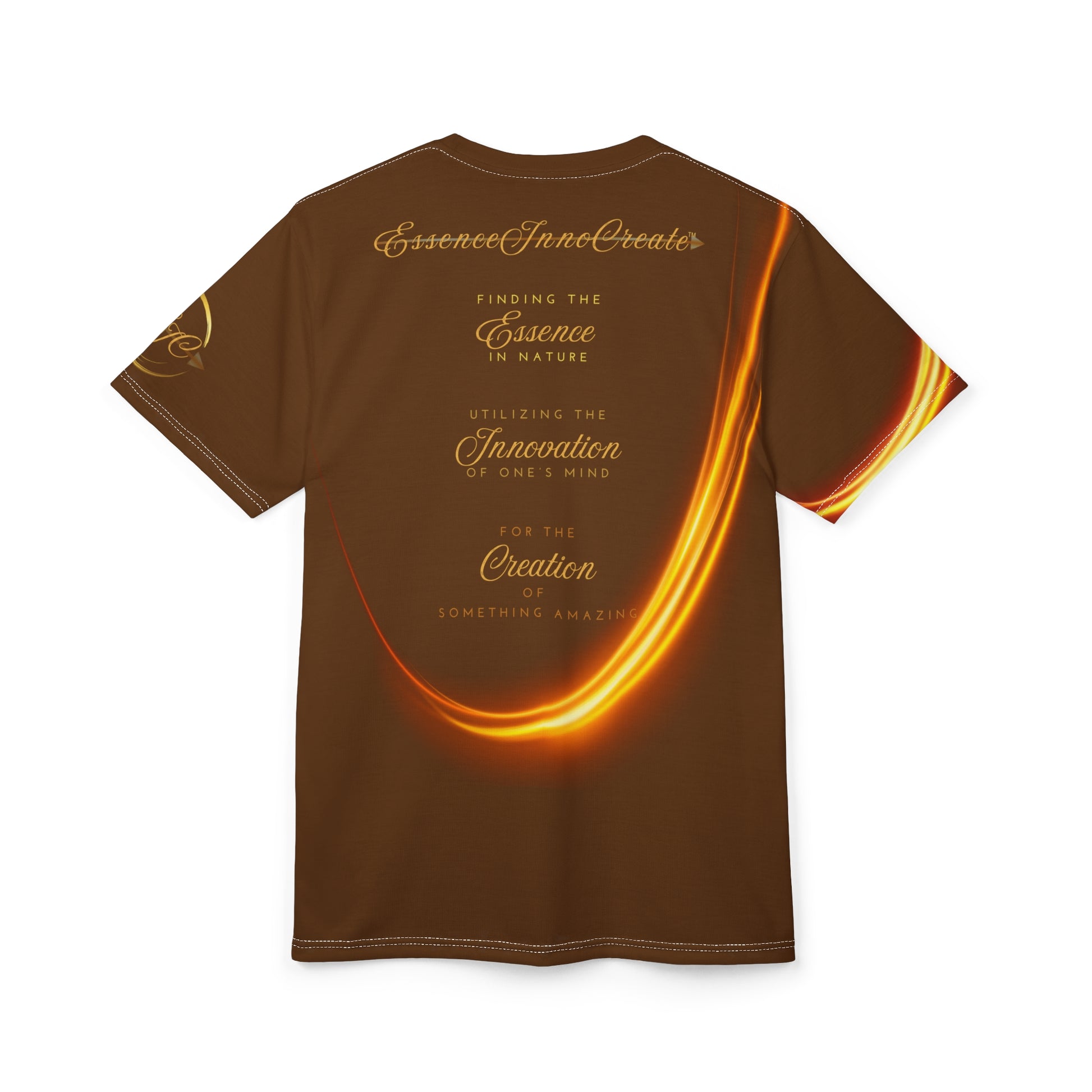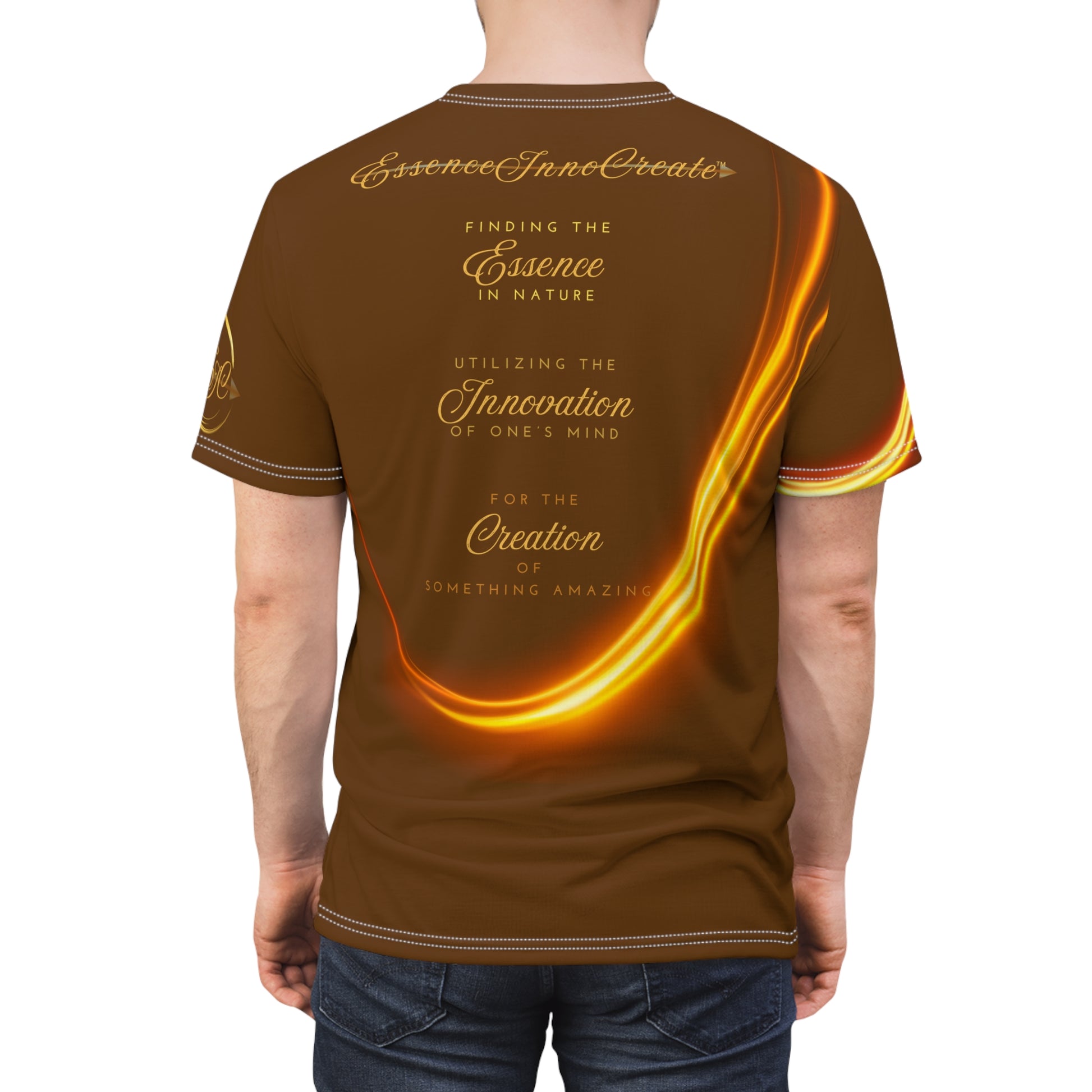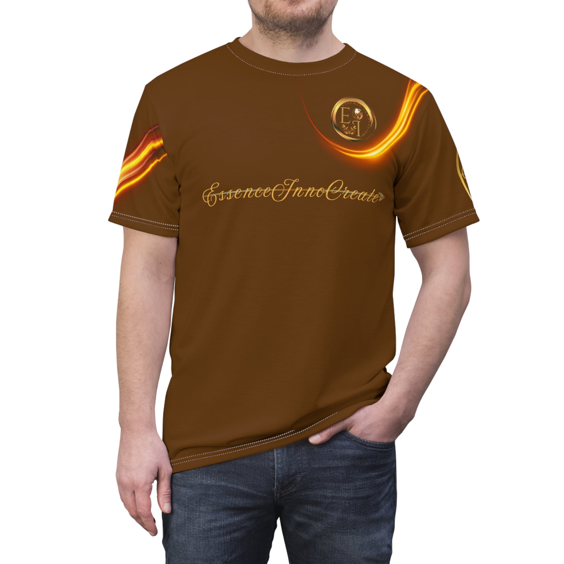 Designed for creators, visionaries, and trendsetters, the EssenceInnoCreate Cut & Sew Tee is more than just a shirt—it’s an expression of strength, confidence, and natural elegance. With a rich brown base and striking gold accents, this tee represents warmth, resilience, and bold self-expression.