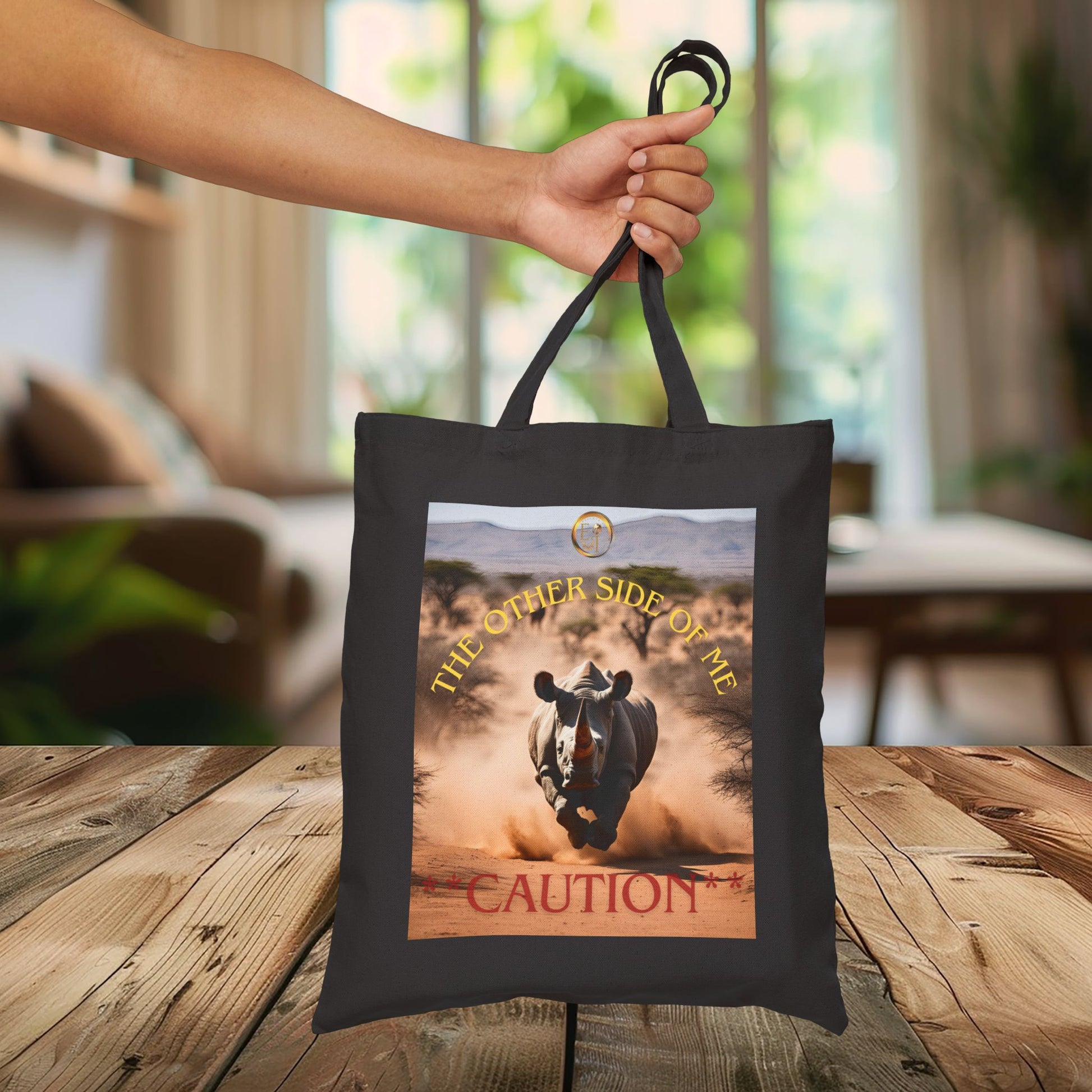Caution Rhino Cotton Canvas Tote Bag, Eco-Friendly Shopping Bag, Animal Lovers Gift, Beach Tote, Adventure Carryall