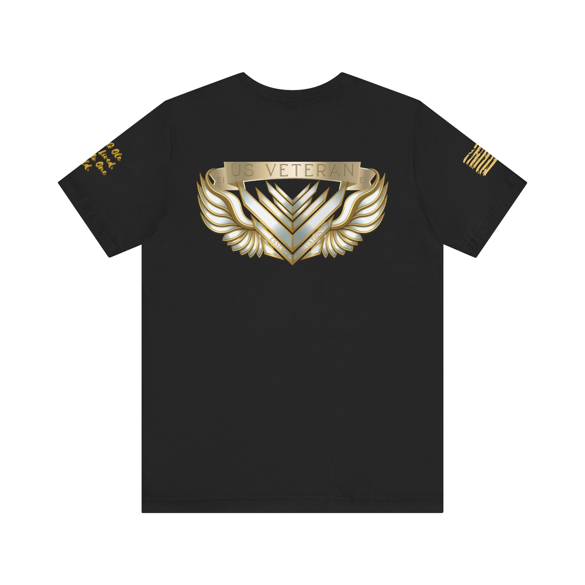 Crafted from high-quality cotton, the Essence Black Veteran Tee offers a comfortable unisex fit that feels as bold as it looks. Featuring the iconic US VETERAN gold emblem on the chest and the signature phrase “Pride Worn Daily,” this shirt brings together timeless style and lasting meaning.