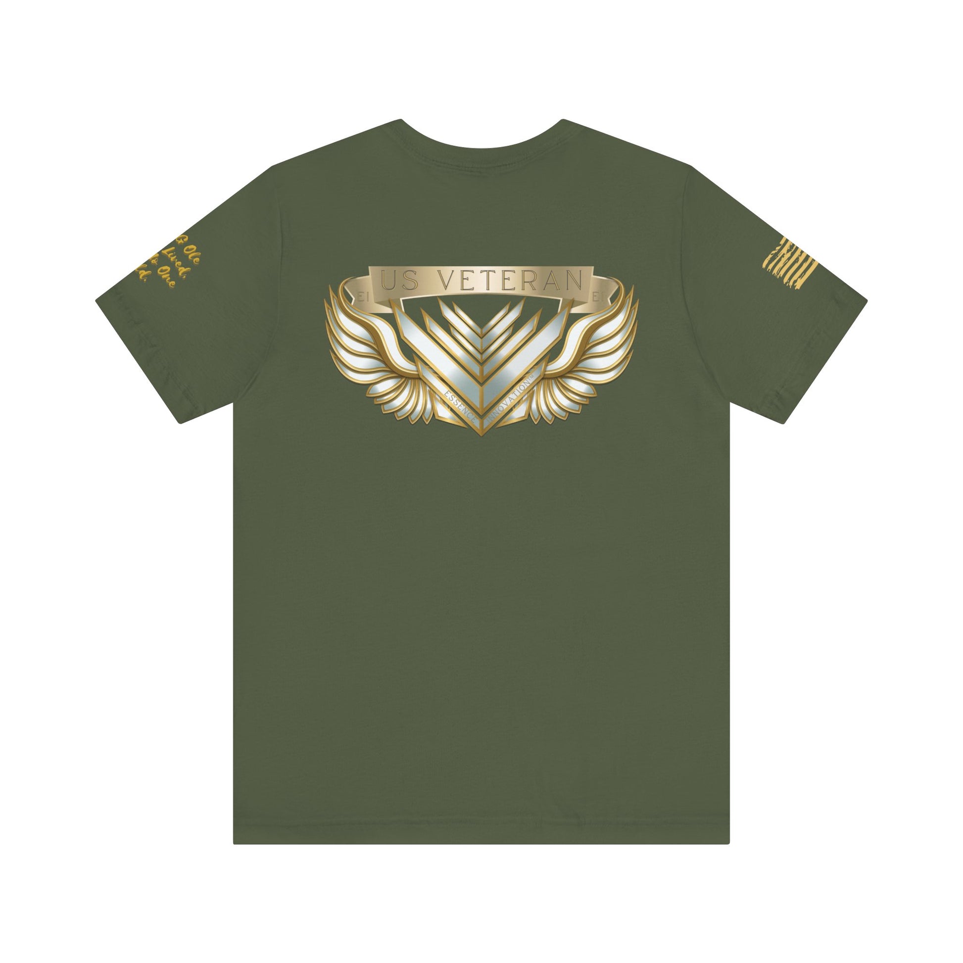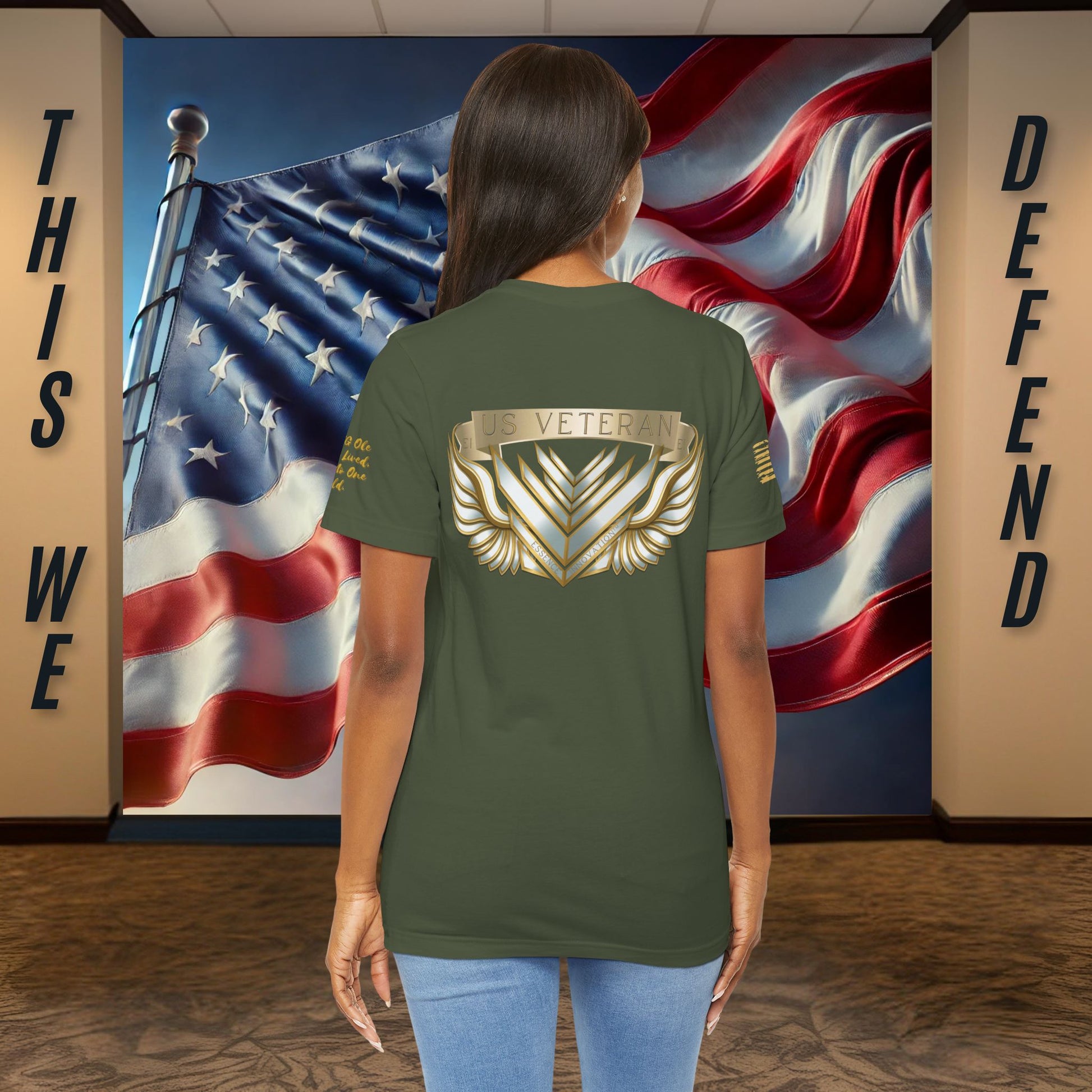 Centered across the chest is our gold US VETERAN emblem, accompanied by a message that resonates deeply: