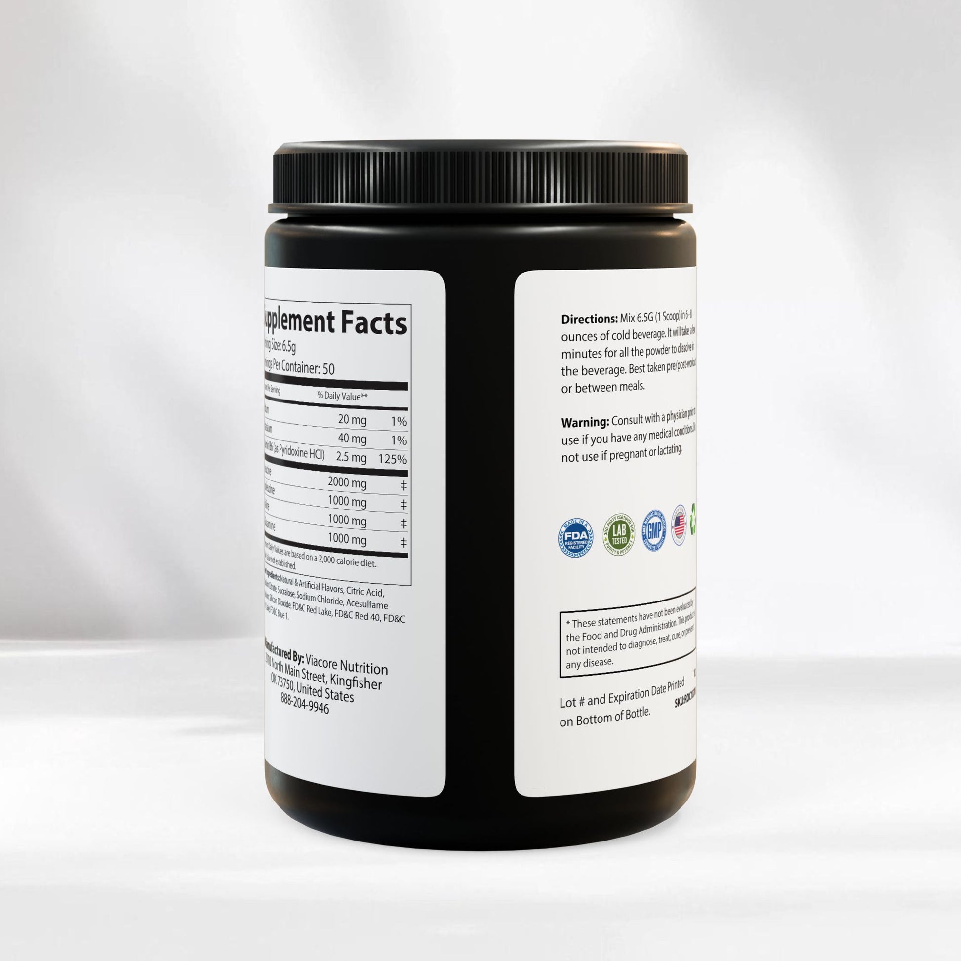 - Ingredients: Sodium, Potassium, Vitamin B6 (as Pyridoxine HCl), L-Leucine, L-Isoleucine, L-Valine, L-Glutamine. Other ingredients include Natural & Artificial Flavors, Citric Acid, Potassium Citrate, Sucralose, Sodium Chloride, Acesulfame Potassium, Silicon Dioxide, FD&C Red Lake, FD&C Red 40, FD&C Blue 1 Lake, FD&C Blue 1.