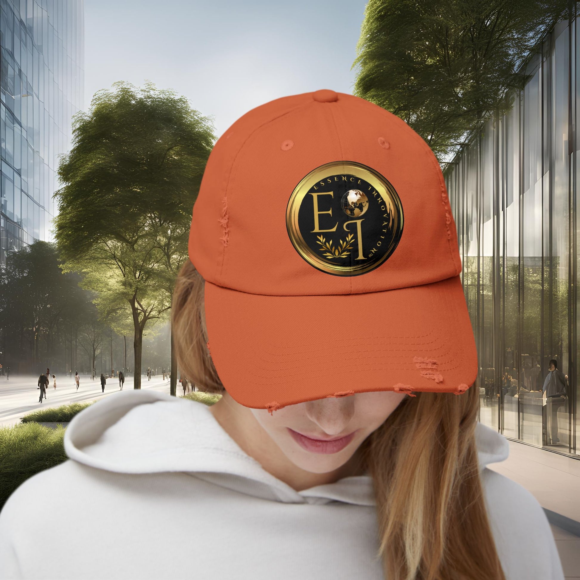 The Unisex Distressed Cap from Essence Innovation brings effortless, vintage-inspired style to your everyday look. Designed for both men and women, it blends casual comfort with a worn-in aesthetic that feels like a favorite from the very first wear. Pair it with denim, athleisure, or your go-to Essence Innovation apparel for a relaxed finish that still feels intentional.