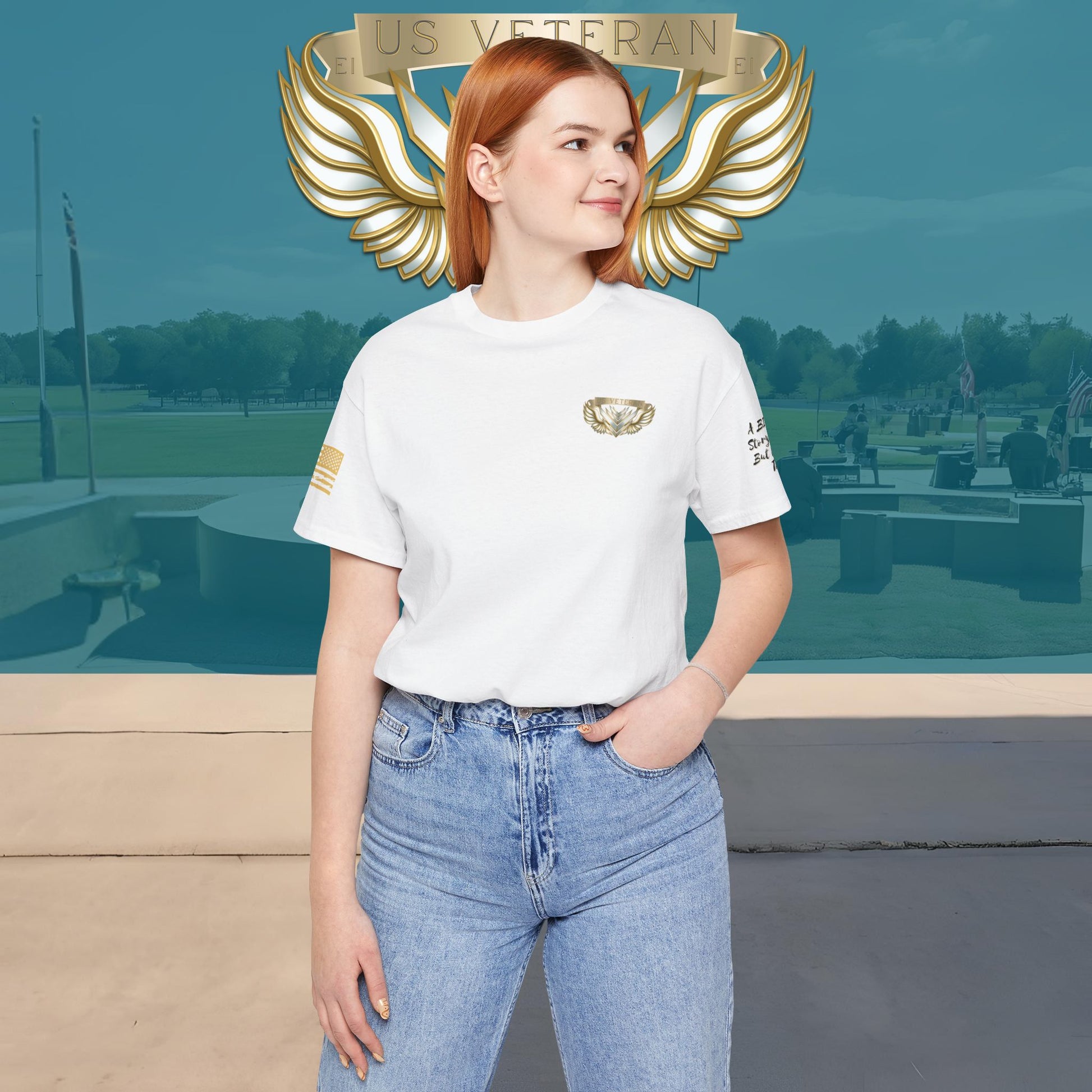You can wear the Essence White Veteran Tee for memorial events, Veterans Day, or any day that calls for quiet pride. It pairs effortlessly with jeans, slacks, or under a jacket, offering versatility and presence all at once.