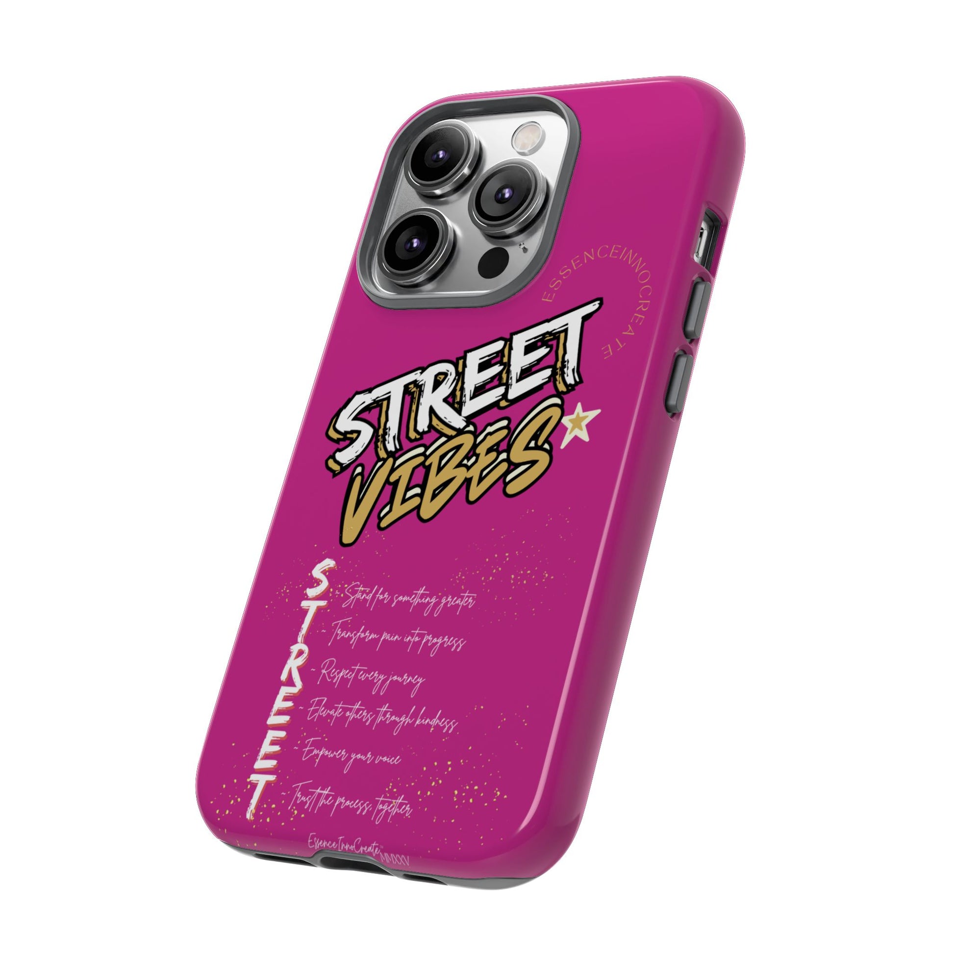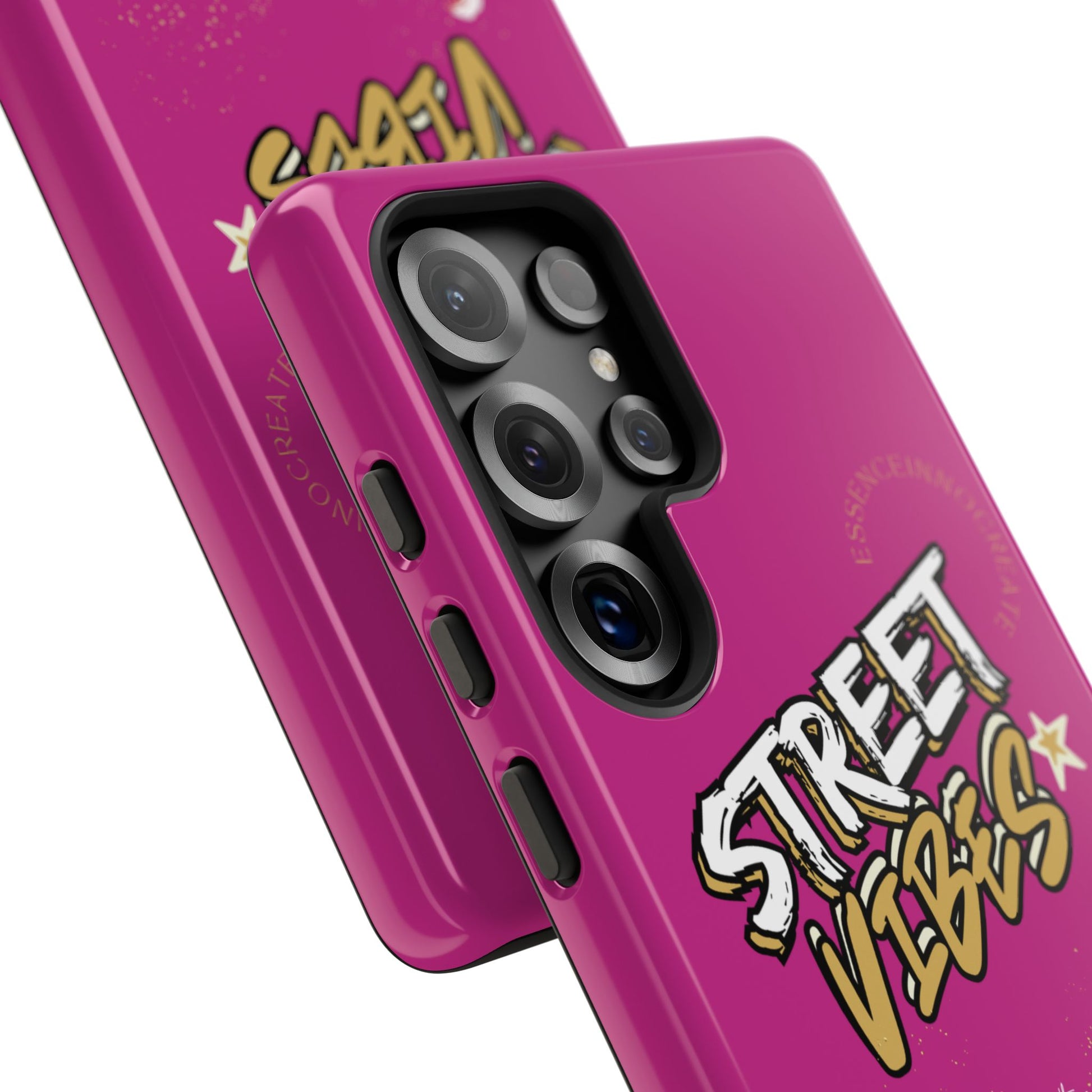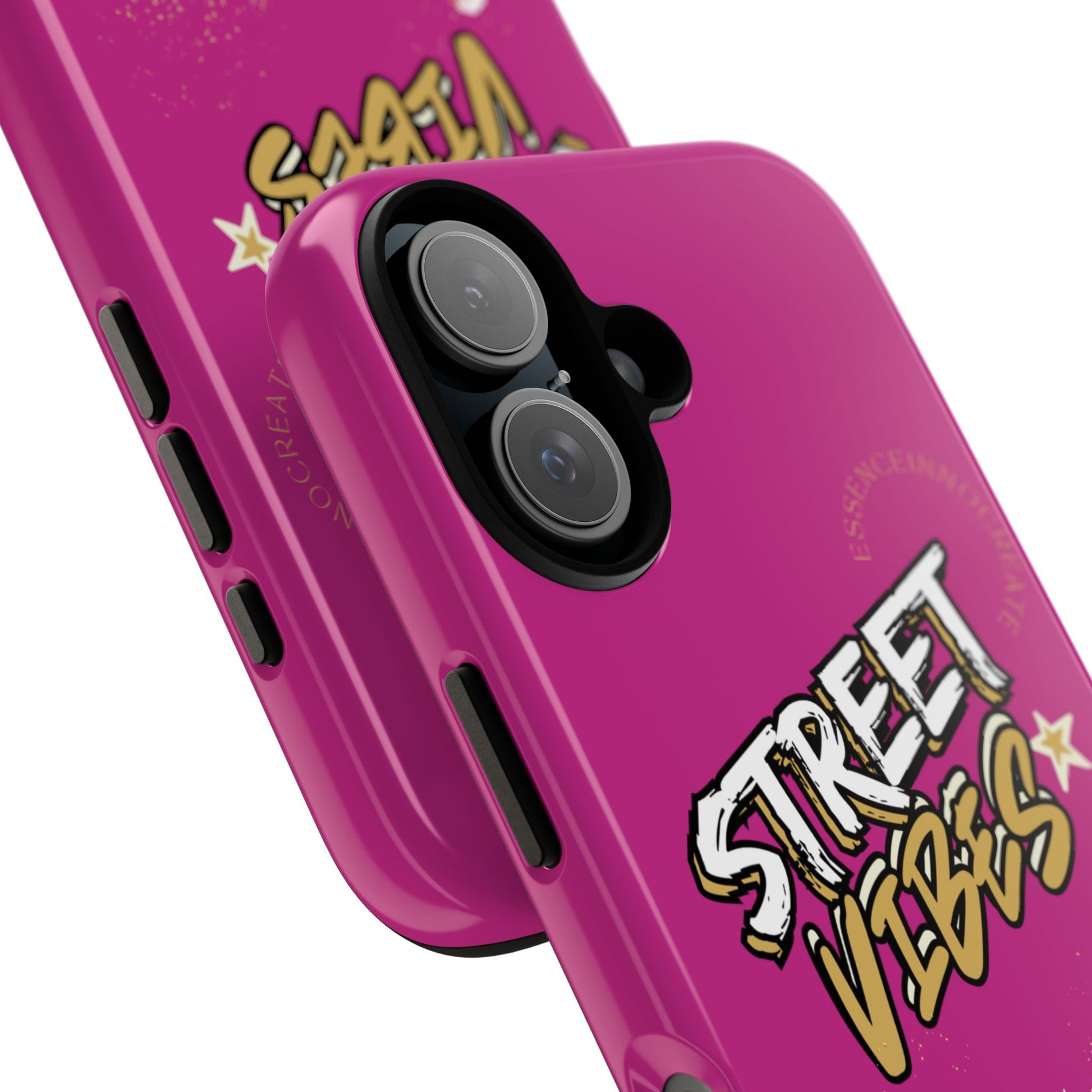 EssenceInnoCreate® Street Vibes Pink Phone Case Turn up your vibe with bold color and urban flair. The Street Vibes Tough Case in hot pink is designed for those who live loud, proud, and unapologetically stylish. Featuring graffiti-style text and street-inspired design, this case adds a punch of personality to your everyday carry.