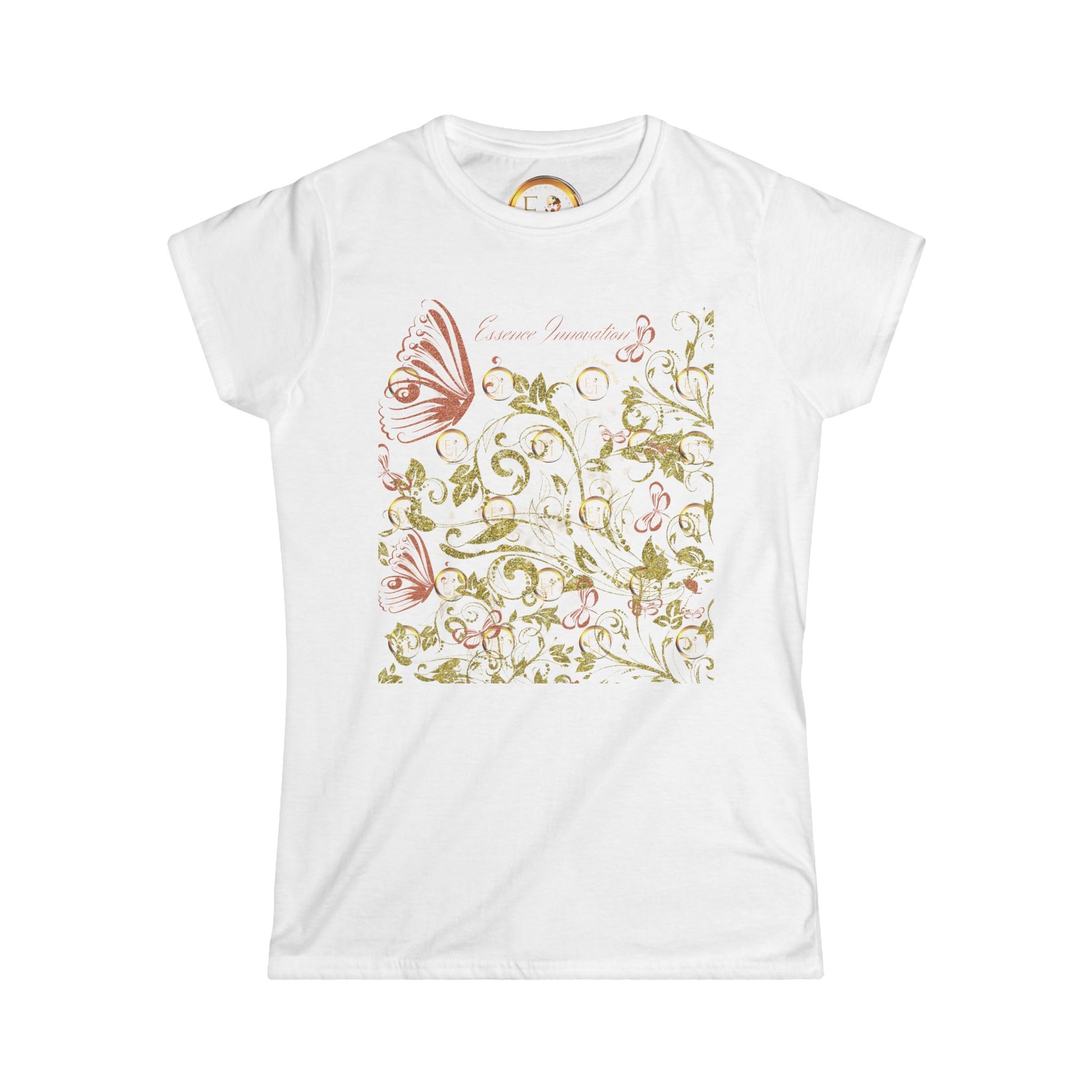 Floral Butterfly T-Shirt in White | Nature-Inspired Botanical Tee | Elegant Boho Shirt for Women | EssenceInnoCreate