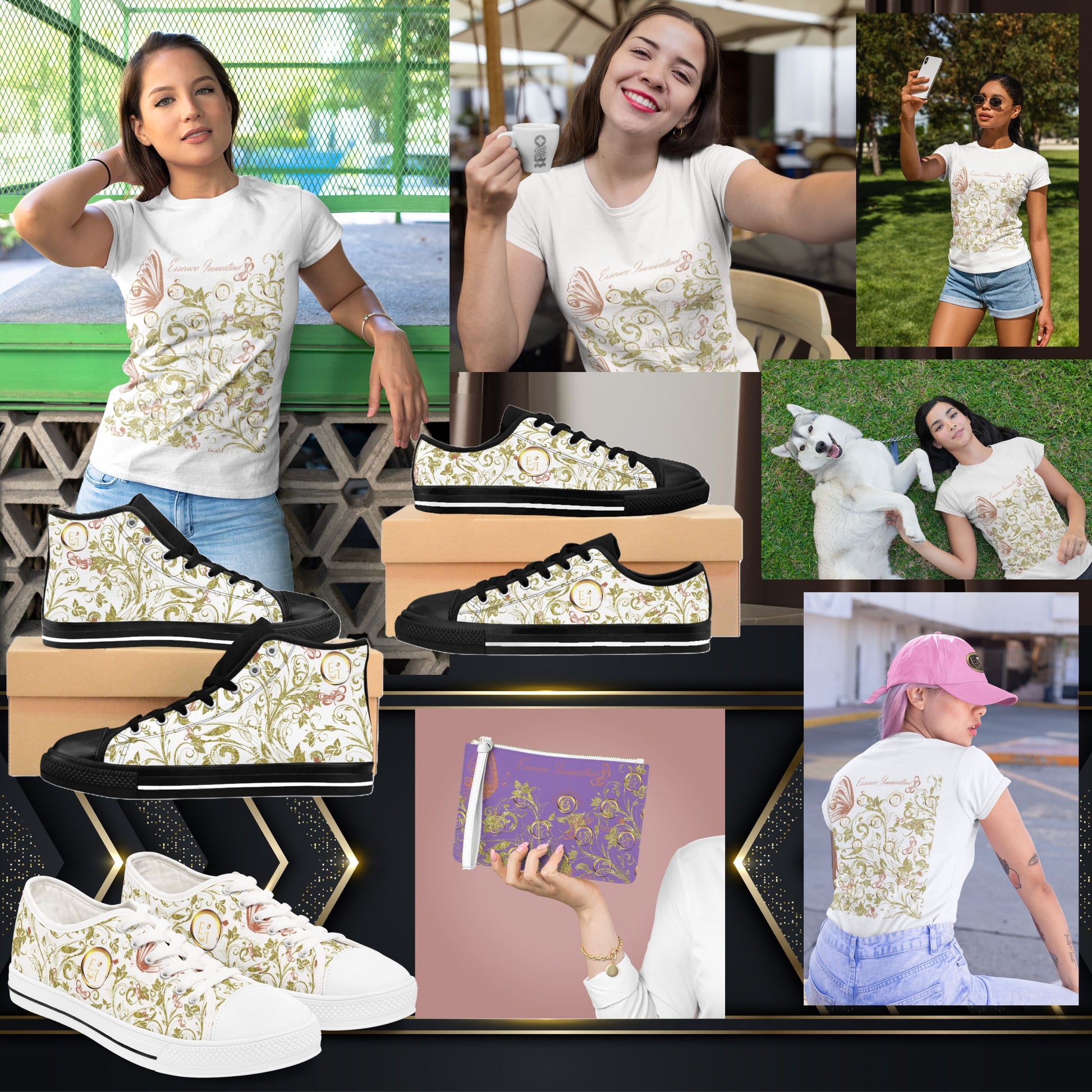 Embrace the light and beauty of nature with the Floral Butterfly T-Shirt in White, part of the handcrafted EssenceInnoCreate collection. Featuring a soft yet striking butterfly surrounded by gold and blush florals, this design glows against a crisp white background—perfect for creating calm, grounded style with an artistic touch.
