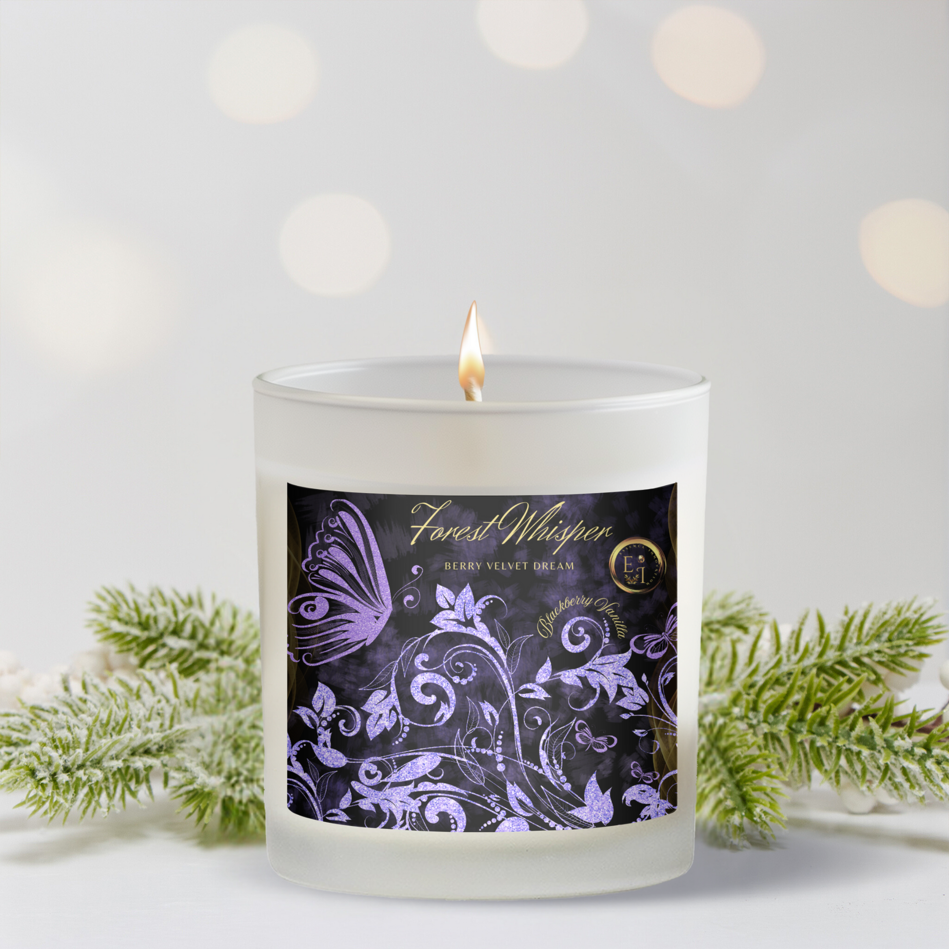 Ignite the Alluring Glow of Berry Bliss Elevate your ambiance with the Forest Whisper Collection's Berry Velvet Dream, an enchanting Blackberry Vanilla candle designed to immerse your senses in a luscious blend of sweet blackberries and creamy vanilla.