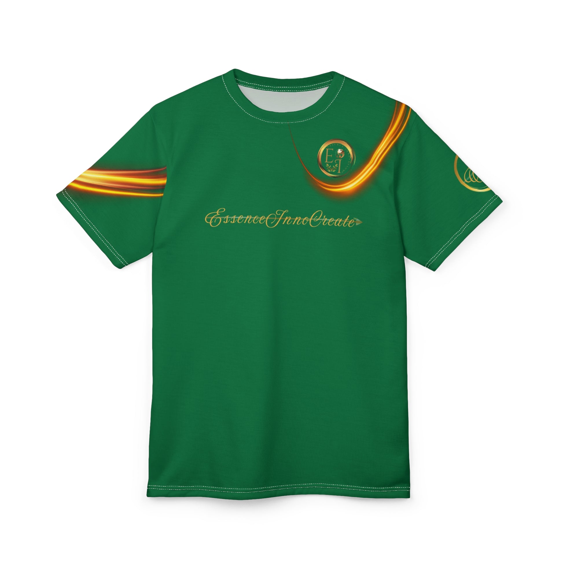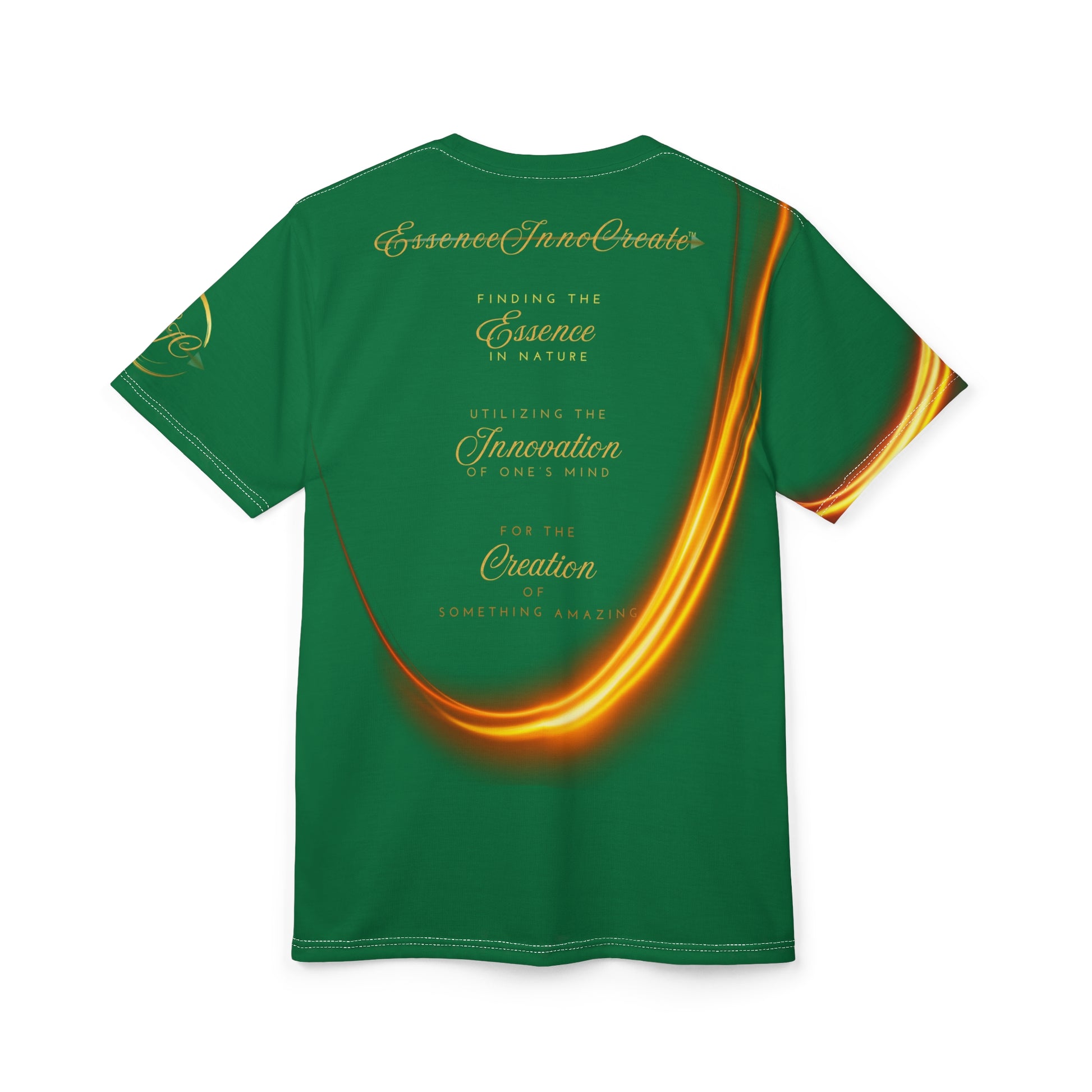 Designed for visionaries, creators, and innovators, the EssenceInnoCreate Cut & Sew Tee is more than just a shirt—it’s an expression of strength, creativity, and harmony with nature. With a rich dark green base and radiant gold accents, this tee represents renewal, ambition, and bold self-expression.