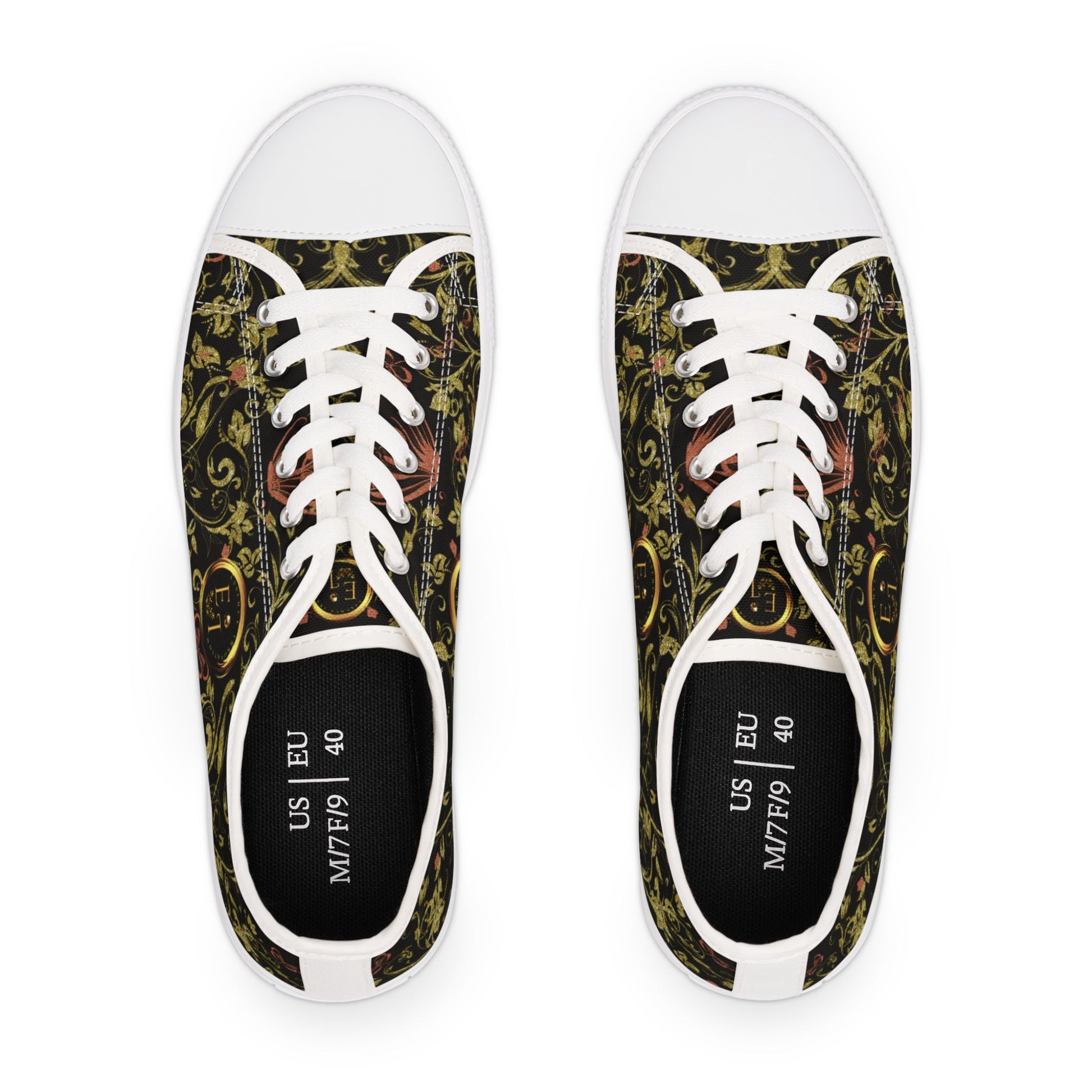 Step into bohemian-inspired beauty with the Womens Bohemian Butterfly Low Top Sneakers, featuring a sleek white sole for a fresh and stylish look. Designed for those who love art, nature, and effortless fashion, these sneakers blend intricate gold-accented butterflies and floral details with lightweight comfort and timeless appeal.
