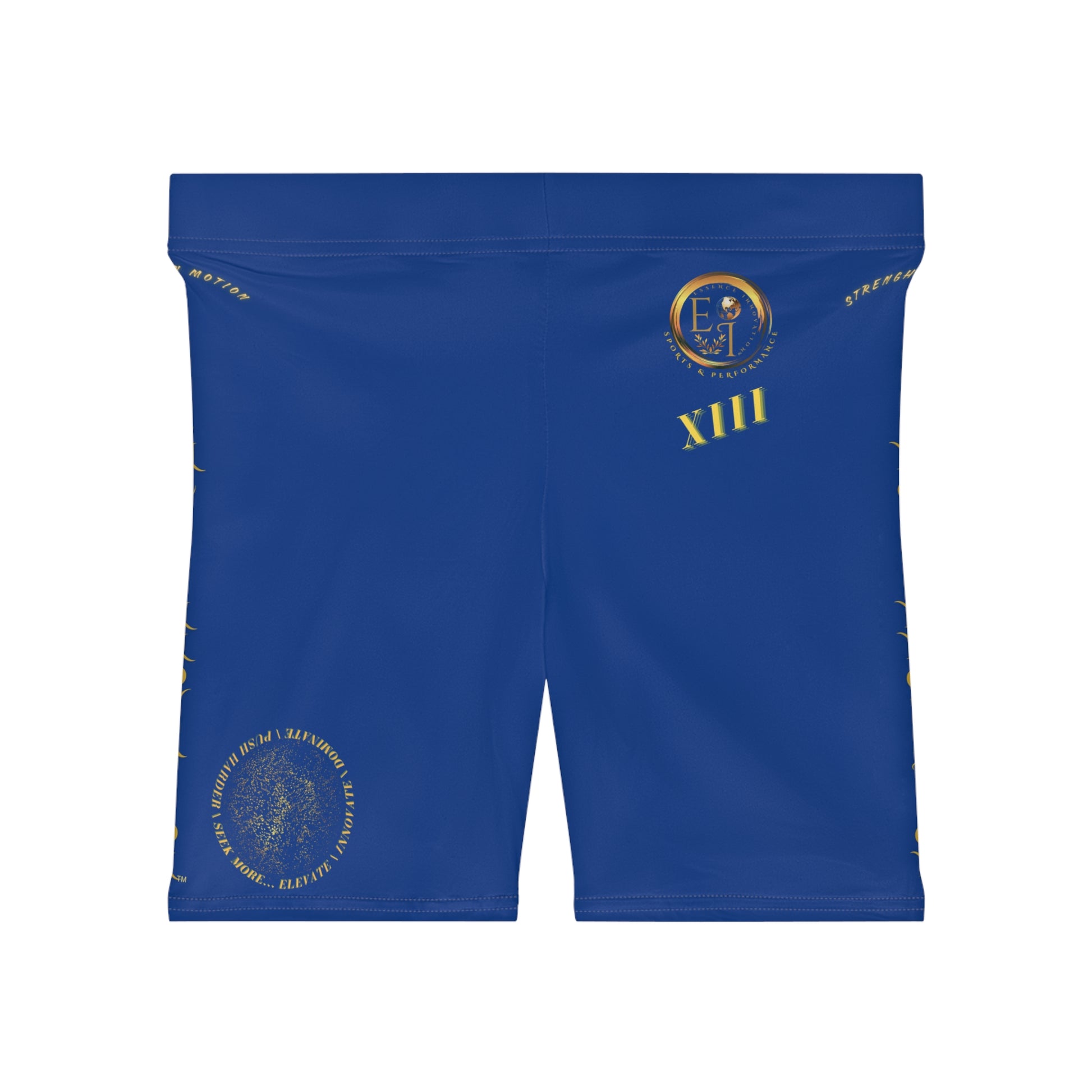 The rich dark blue tone with metallic gold branding represents confidence, power, and agility. With Essence Innovation™ side branding, the Elevate / Innovate / Dominate crest, and the Roman numeral XIII, these shorts embody performance and determination. Pair them with the Seek More SB XIII Sports Bra for a fully coordinated, high-performance look.