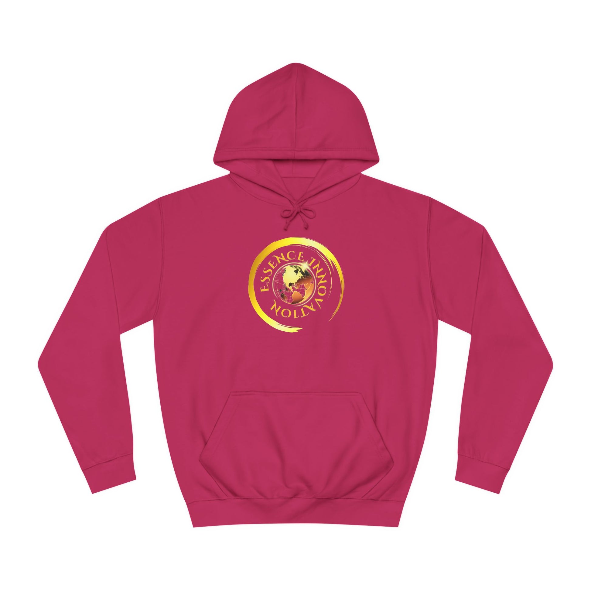 The front features the iconic Essence Innovation logo in shimmering golden tones, a symbol of innovation and ambition. On the back, the phrase “Crafted for Those Who Seek More” is beautifully displayed in a golden motif inspired by nature and contemporary design. The lively Hot Pink color adds energy and personality, making it the ultimate statement hoodie.