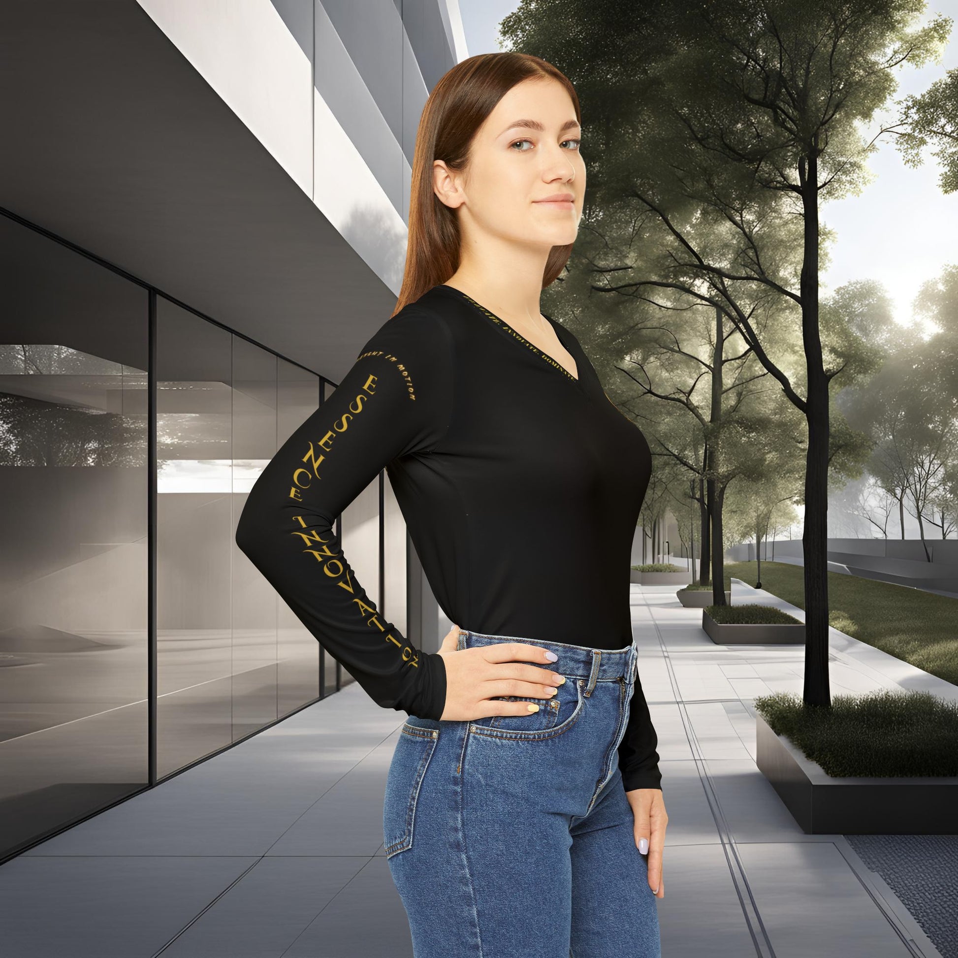Unleash bold energy with the Seek More Performance VII | Black LS V-Neck. This sleek, moisture-wicking long-sleeve is designed for style, comfort, and flexibility—perfect for the gym or casual wear.