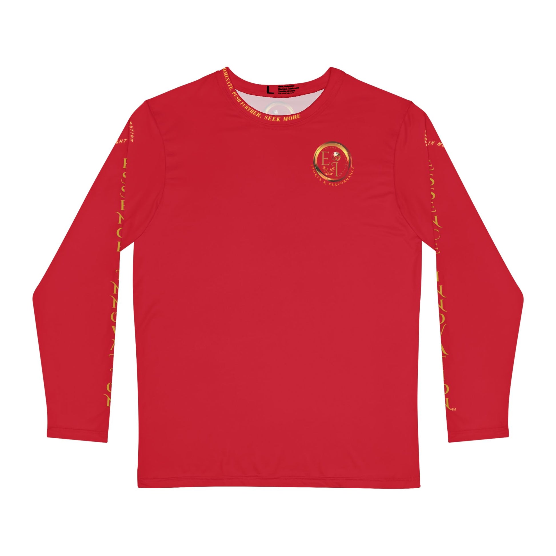 Elevate your performance with the Seek More Performance X | EI Sports Long Sleeve | Dark Red. Designed for athletes and active individuals, this long-sleeve tee combines style, functionality, and comfort. Crafted from 100% brushed polyester, it offers a lightweight, breathable feel that keeps you cool and dry during workouts or casual wear.