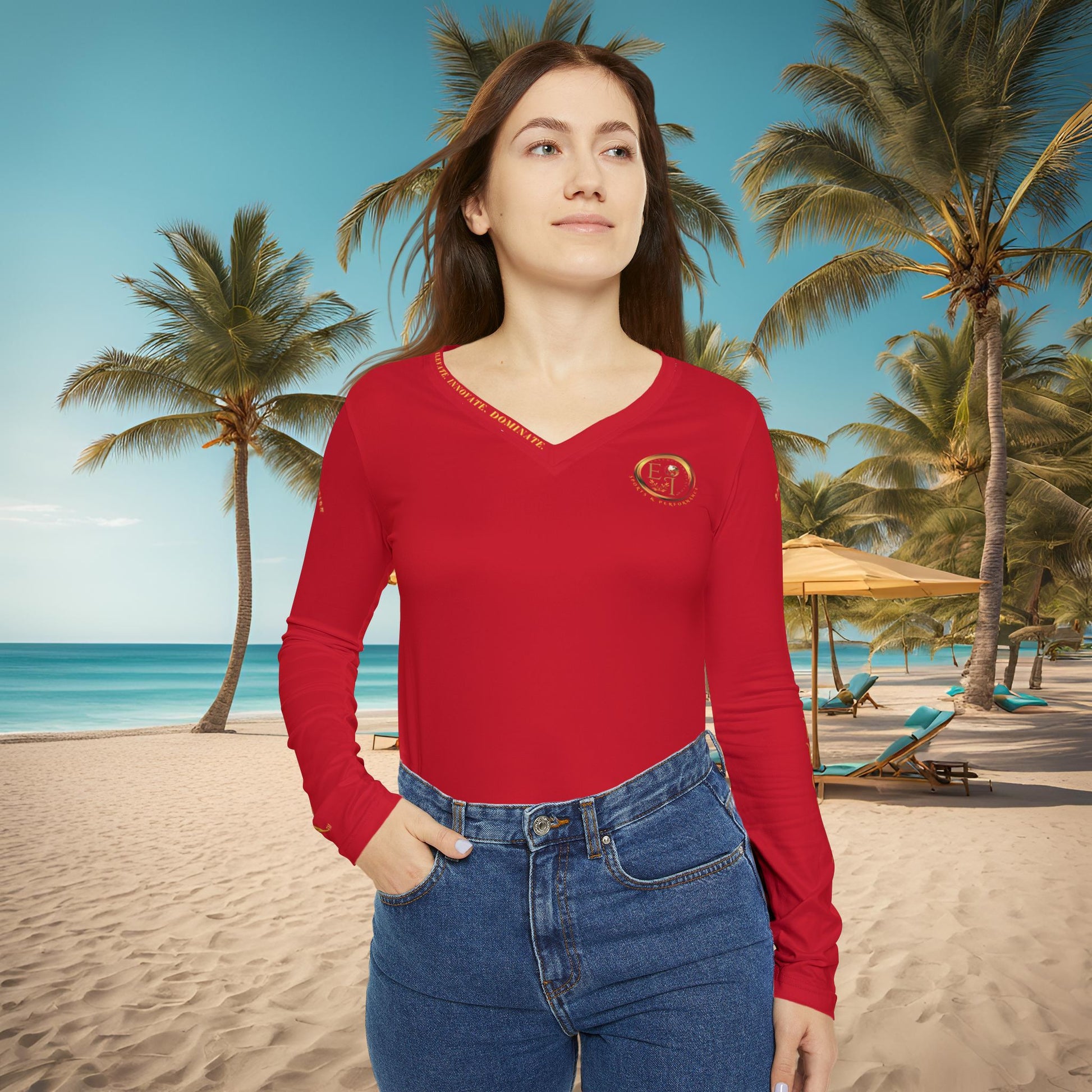 Seek More Performance X | EI Sports LS V-Neck | Dark Red