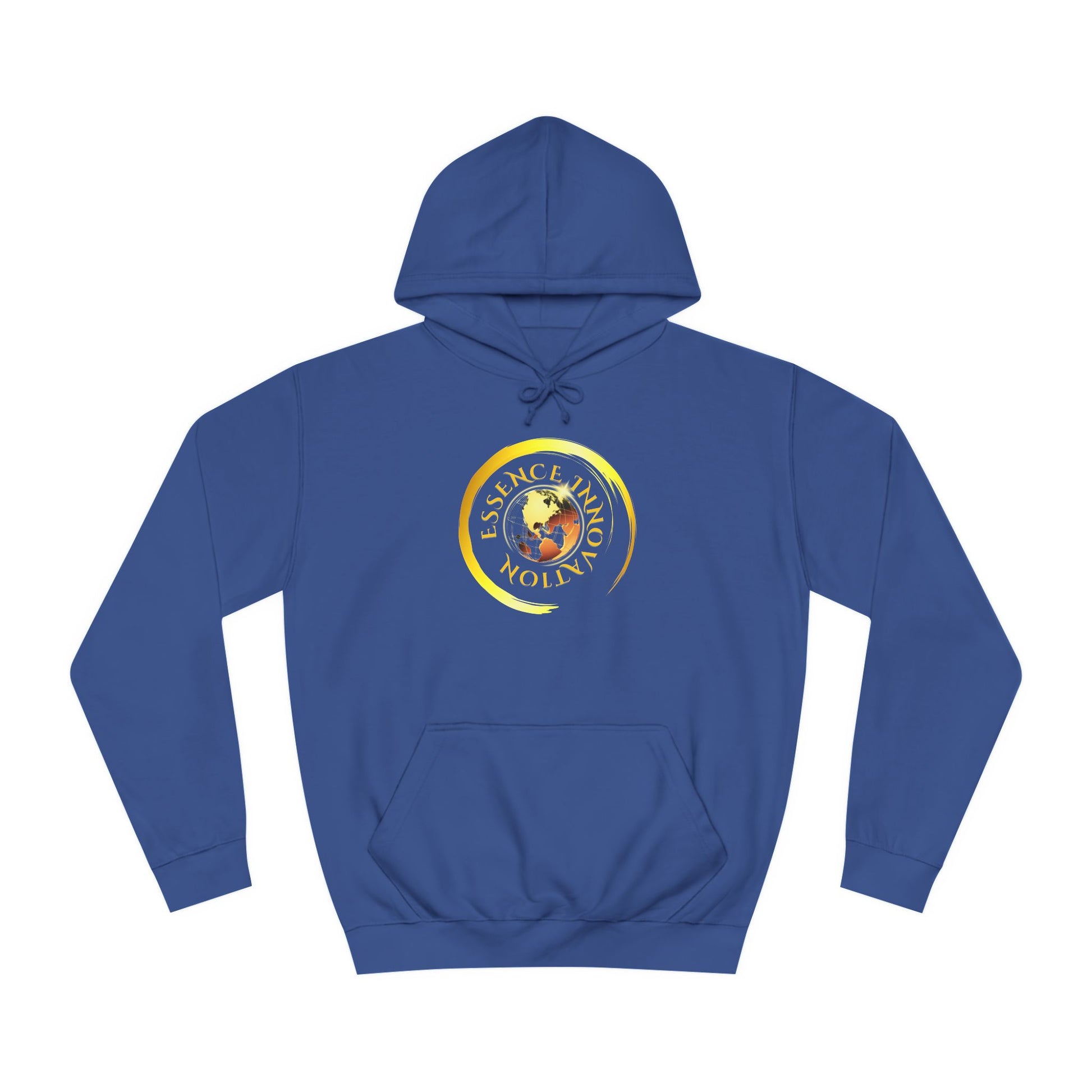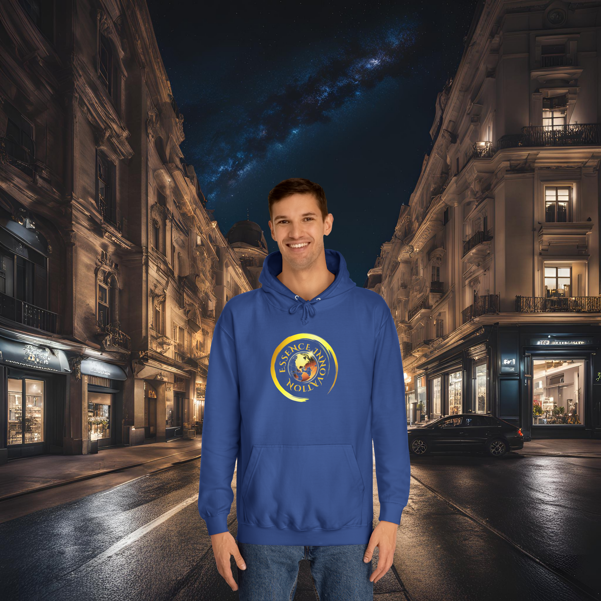 The front showcases the iconic Essence Innovation logo in striking golden tones, symbolizing innovation and bold ambition. On the back, the empowering phrase “Crafted for Those Who Seek More” is highlighted in a golden motif inspired by modern design and nature. The vibrant Royal Blue color enhances the hoodie’s statement appeal, making it a standout piece for any occasion.