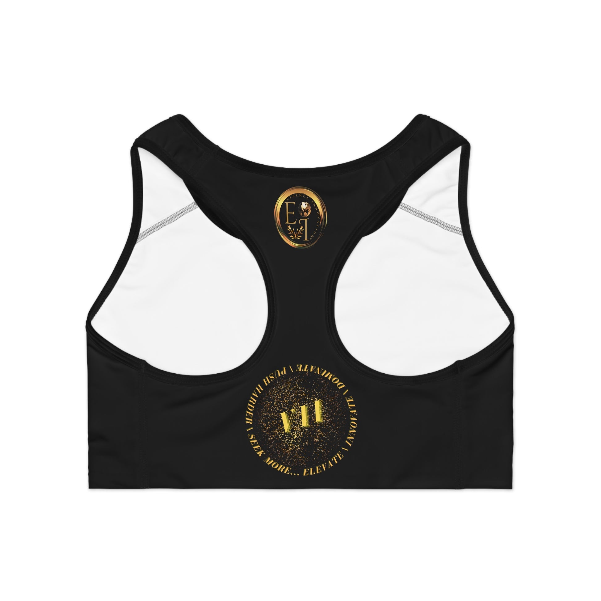 The sleek black base with metallic gold branding creates a bold, commanding aesthetic, representing power, precision, and mastery. The Essence Innovation™ Elevate / Innovate / Dominate crest and Roman numeral VII on the back reinforce strength and ambition. Pair it with the Seek More BS VII Biker Shorts for a coordinated, performance-driven look.