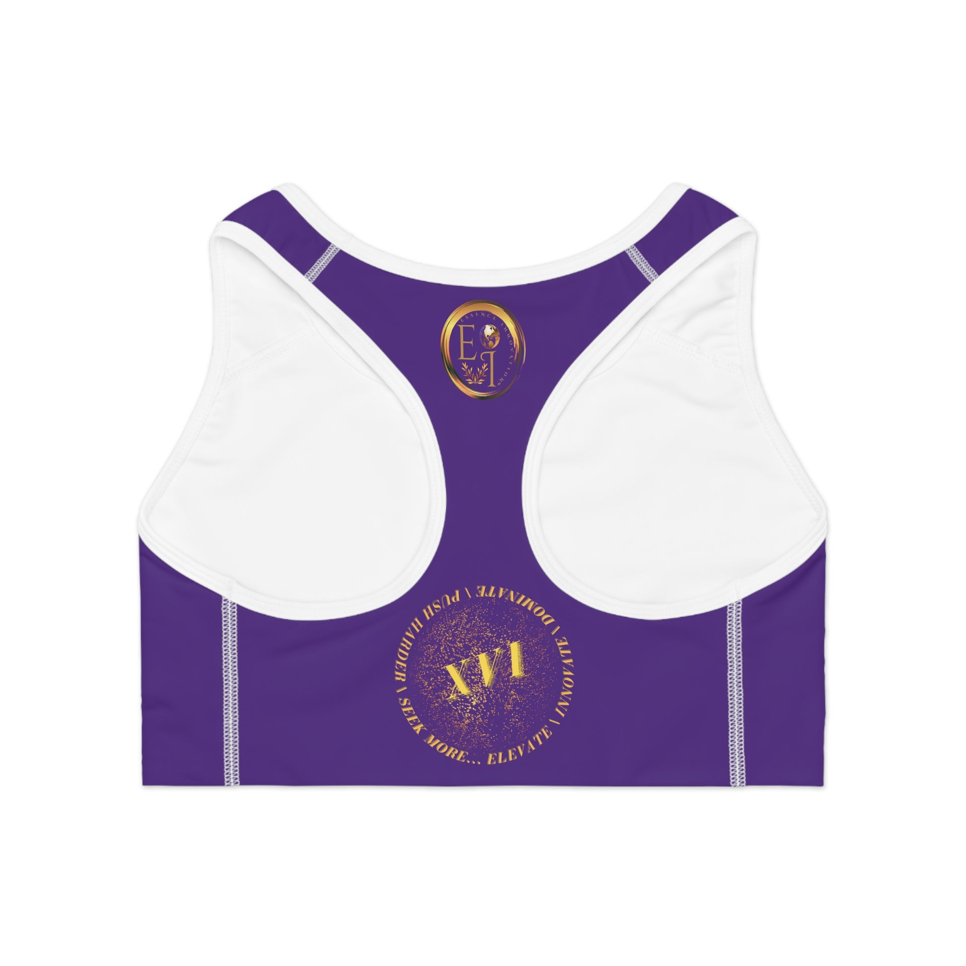 The deep purple base with metallic gold branding creates a bold, powerful aesthetic, symbolizing strength and ambition. The back features the Elevate / Innovate / Dominate crest and Roman numeral XVI, reinforcing the Essence Innovation™ legacy. Pair it with the Seek More BS XVI Biker Shorts for a cohesive, game-changing look.