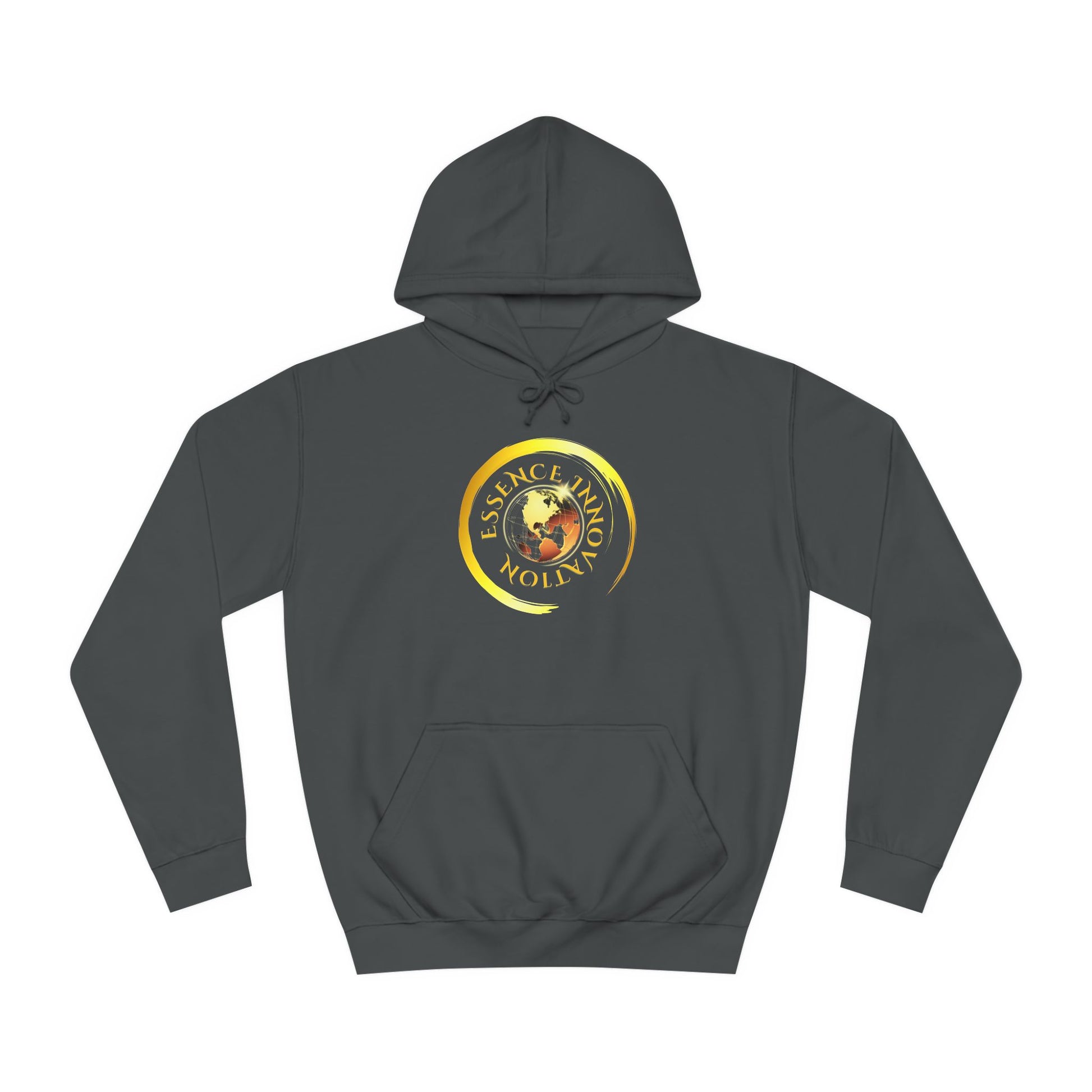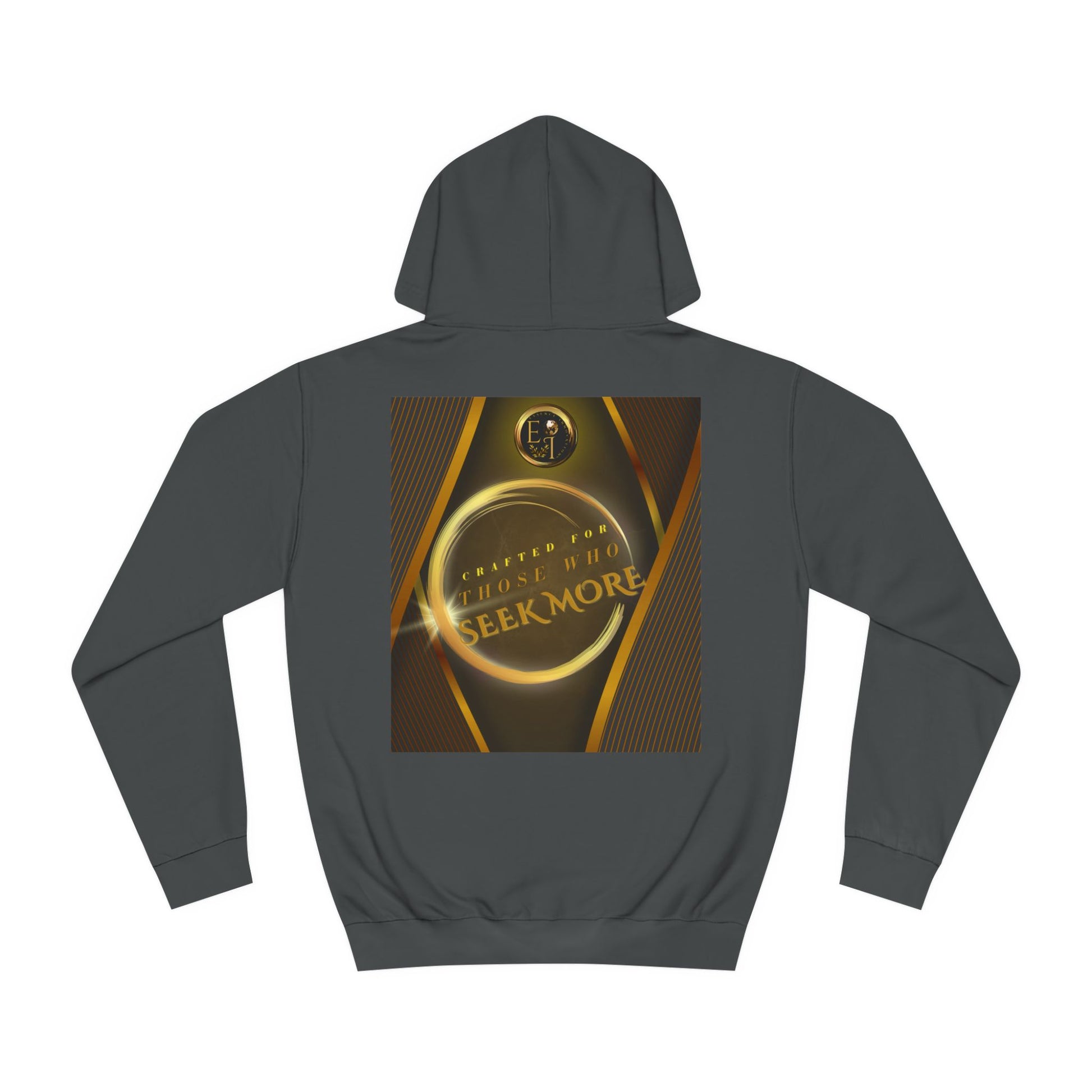 The front showcases the iconic Essence Innovation logo in striking golden tones, symbolizing ambition and innovation. On the back, the phrase “Crafted for Those Who Seek More” is boldly displayed in a golden motif inspired by nature and modern design. Together, these details make this hoodie a versatile and standout piece for any wardrobe.