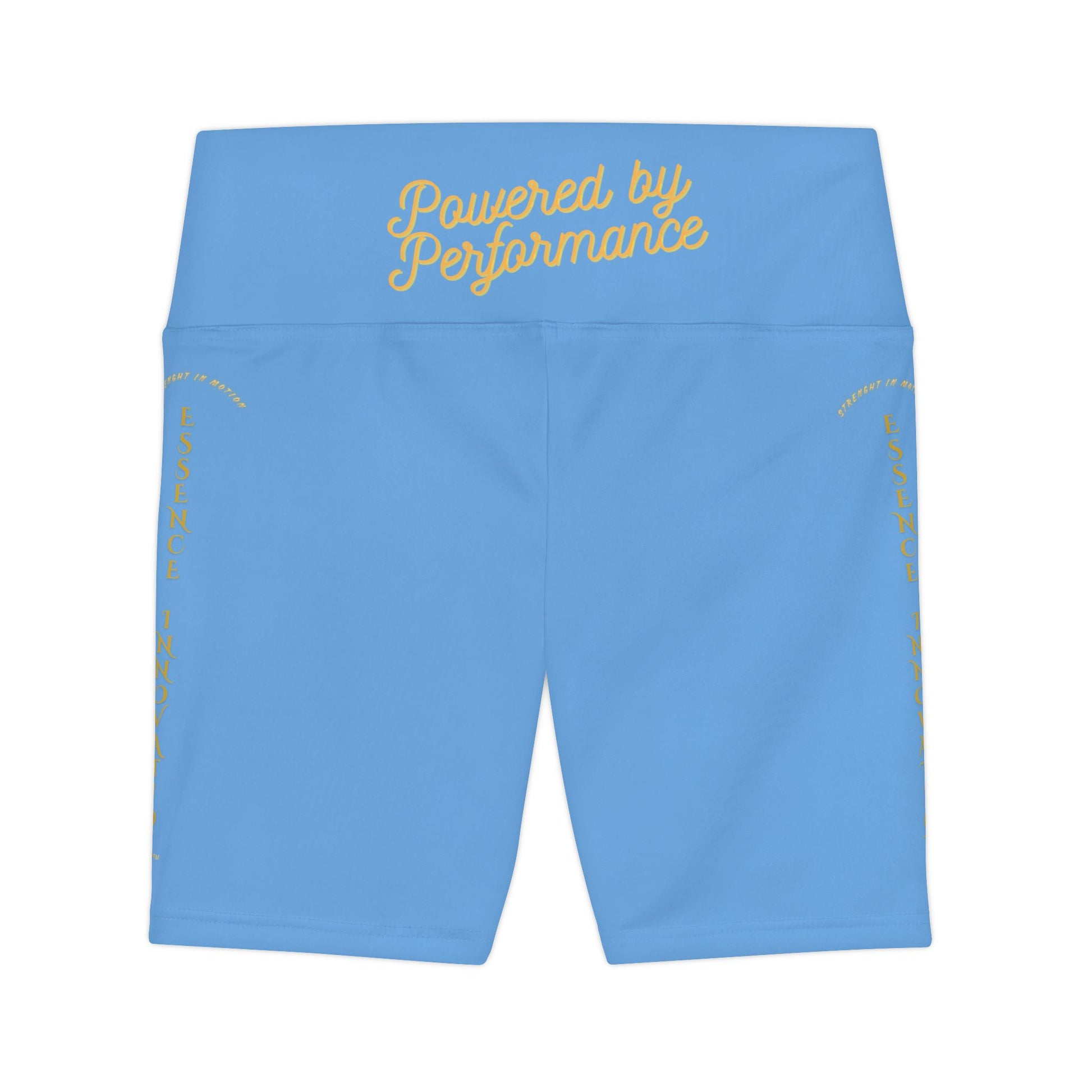The mid-thigh length provides just the right amount of coverage and support, preventing ride-up during intense movements. The bold Essence Innovation branding reflects strength and determination, complementing the refreshing light blue color. Whether you're in the gym or on the go, these workout shorts keep you comfortable and focused on your goals.