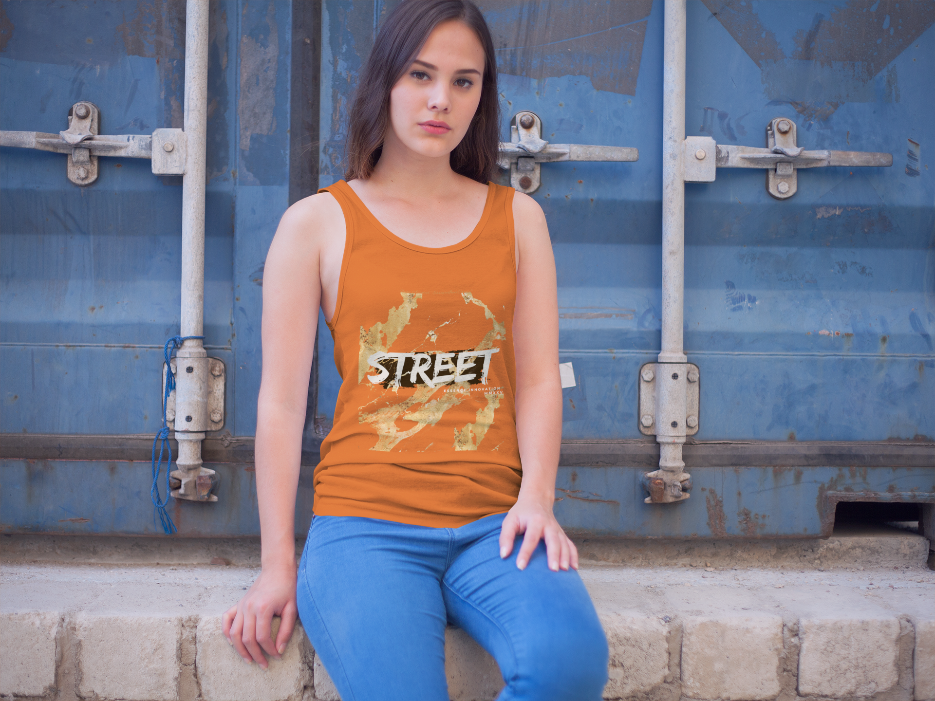 The STREET Collection by Essence Innovation uses apparel as a platform for truth and transformation. The STREET Gold Graffiti XI Orange Tank celebrates vibrant expression while honoring sustainability. Assembled in the USA with globally sourced parts, it reflects thoughtful craftsmanship and purpose-driven design.