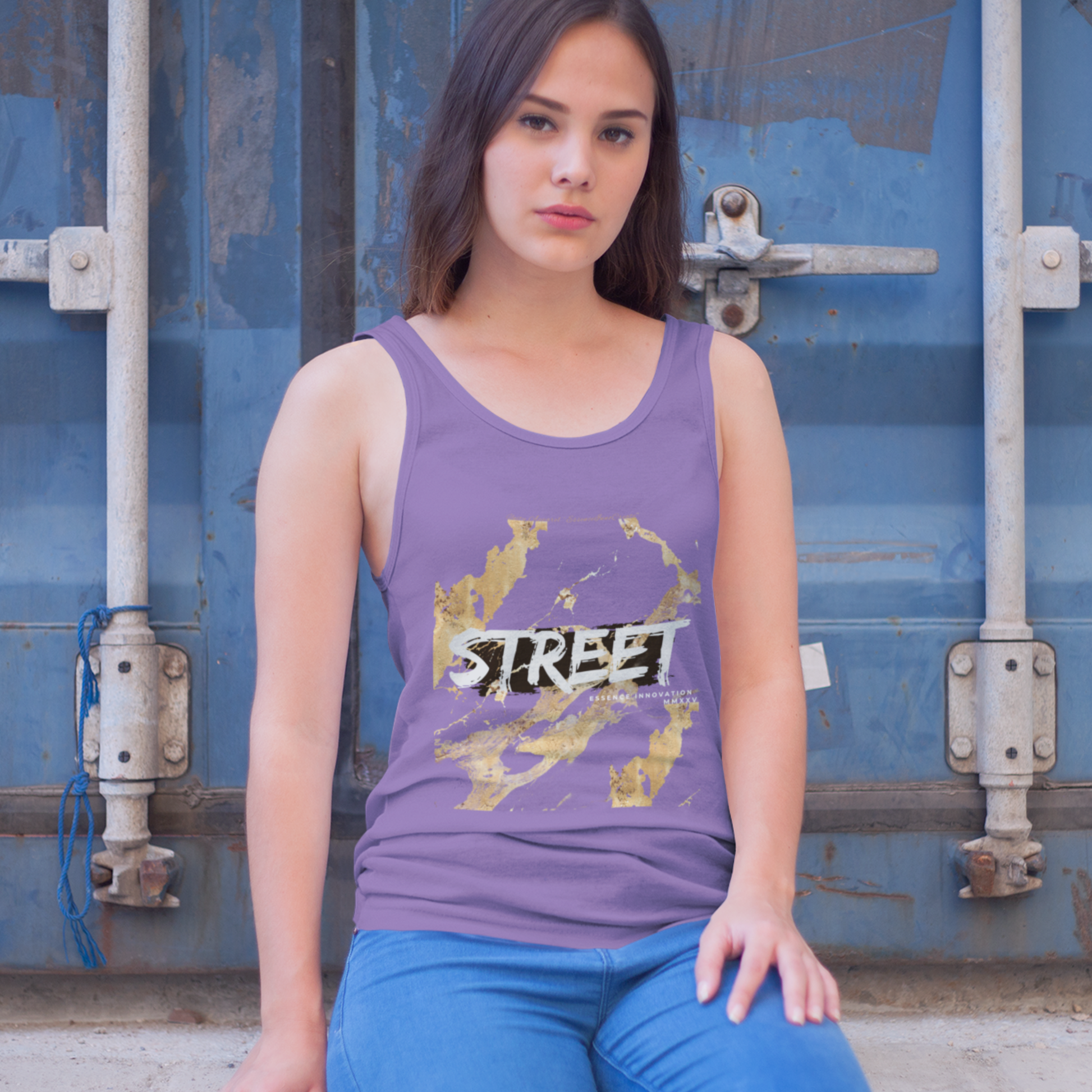 At Essence Innovation, every garment carries meaning. The STREET Gold Graffiti XIX Soft Purple Tank reflects sustainable craftsmanship and the belief that clothing can act as voice and legacy. Assembled in the USA with globally sourced parts, it blends intentional design with purposeful expression.