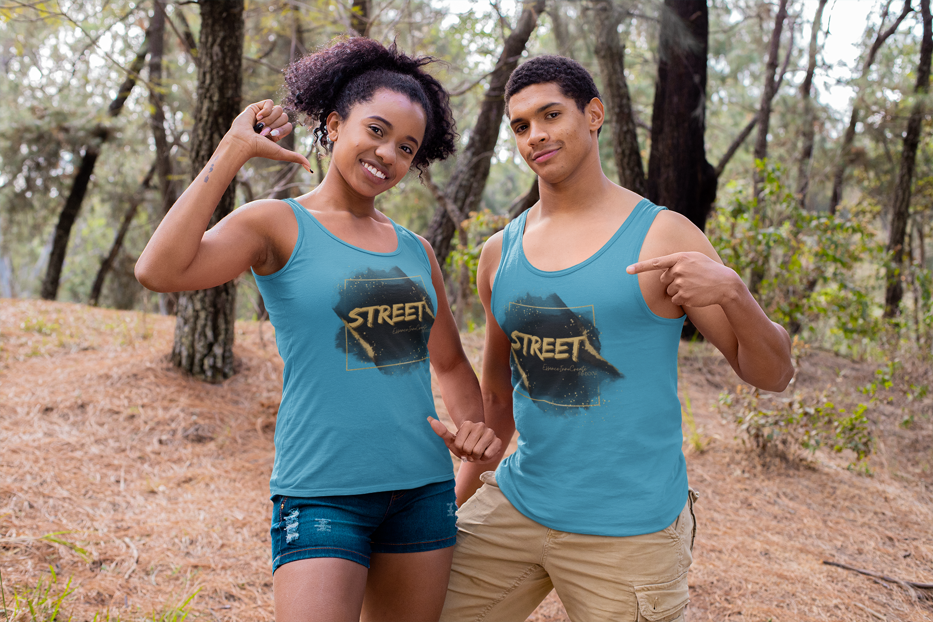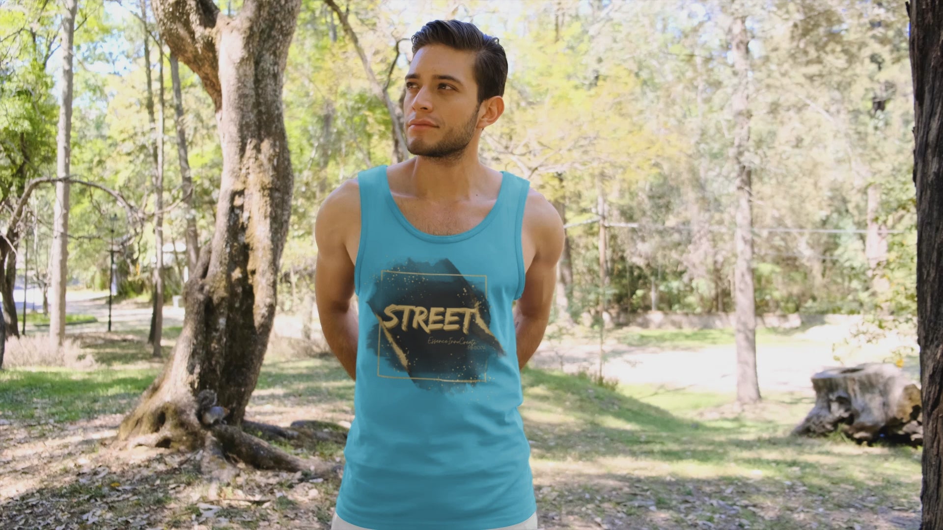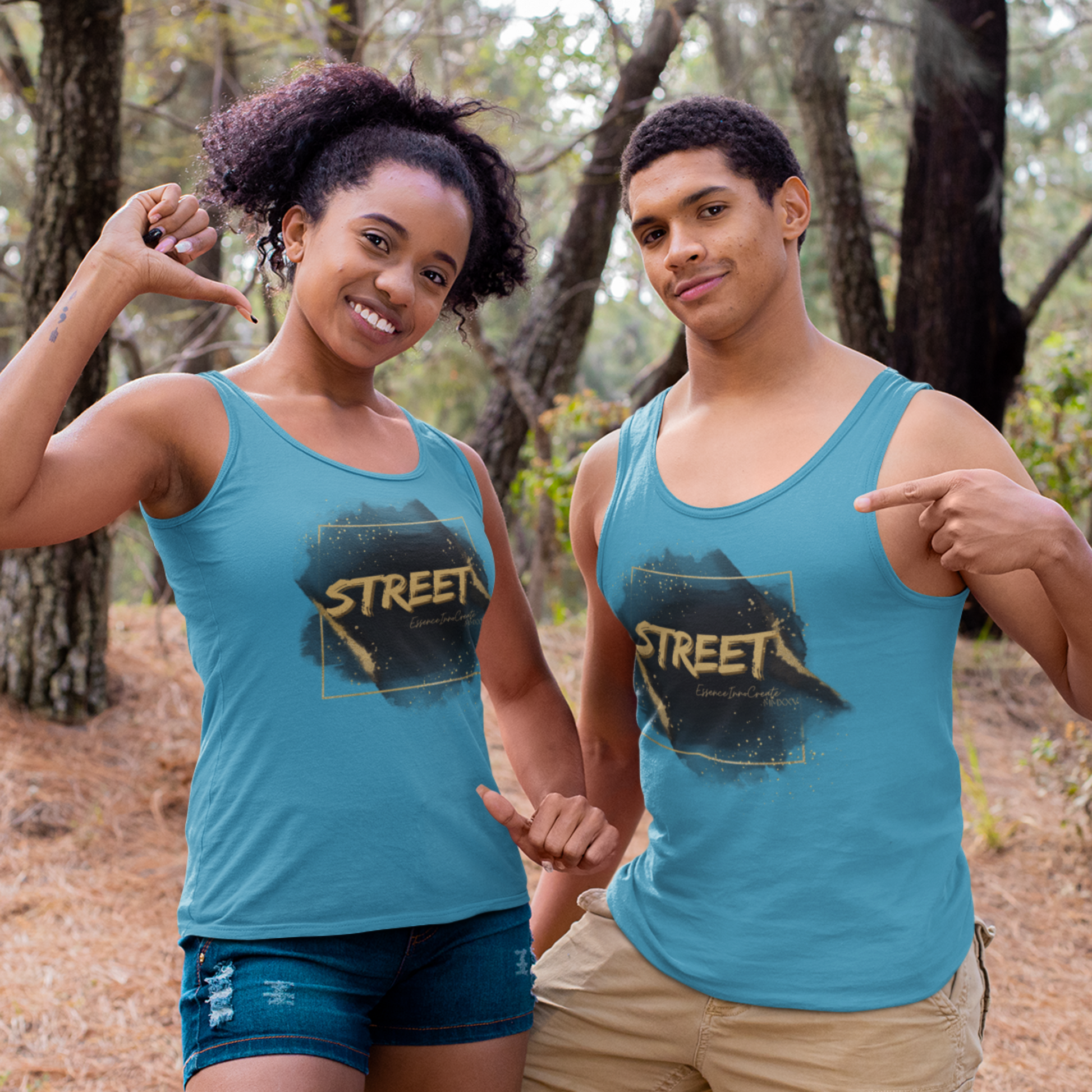 The Street Wear Tank XV | EssenceInnoCreate | Turquoise radiates energy, creativity, and fresh confidence. Its turquoise base brings a lively burst of color to the Street Wear series, pairing beautifully with the distressed gold graffiti STREET graphic on the front. On the back, the STREET values message takes form in white with gold flakes, reminding us to live by six core principles: