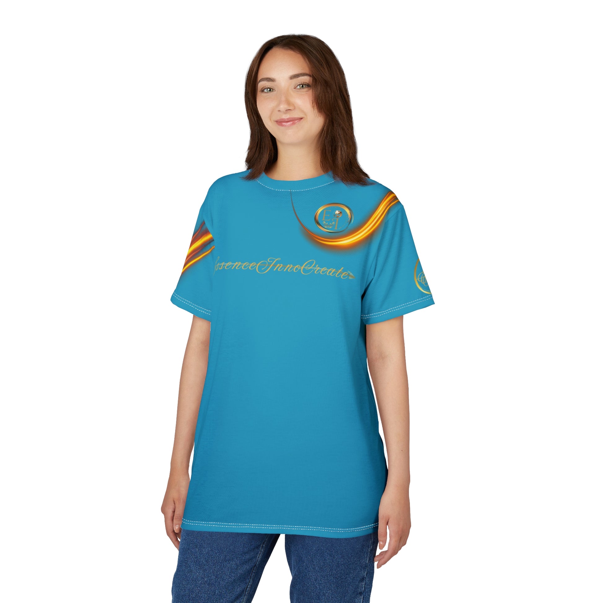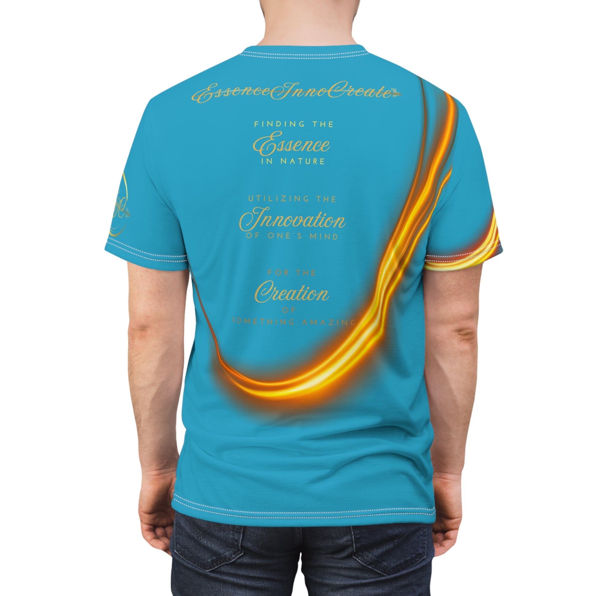 Designed for trendsetters, visionaries, and creators, the EssenceInnoCreate Cut & Sew Tee is more than just a shirt—it’s an expression of bold individuality, vibrant energy, and artistic confidence. The striking turquoise base with glowing gold accents makes this tee a standout choice for those who love color, creativity, and high-end fashion.